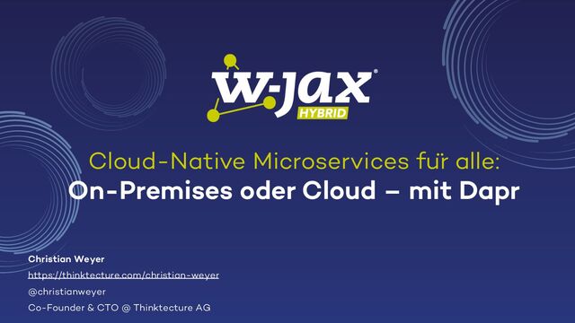 Microservices-all-the-things – haben wir oft genug gehört. Lassen Sie uns in diesem Talk über pragmatische Wege zum Umsetzen Service-basierter Architekturen sprechen, die modernen Cloud-native-Ansätzen genügen. Mit der beispielhaften Verwendung von Dapr als Open-Source-Laufzeitumgebung und Framework zeigt Christian Weyer, wie Sie Ihre Zeit und Ihr Hauptaugenmerk auf das Schreiben von Funktionalität und Geschäftslogik konzentrieren können, nicht auf die Infrastruktur drumherum. Und das für so gut wie jede Programmiersprache. Zu guter Letzt erfahren Sie, wie Sie Ihre (Micro-)Services in einem Spektrum von Ausführungsumgebungen laufen lassen, von selbst gehosteten lokalen Umgebungen bis hin zur Public Cloud.