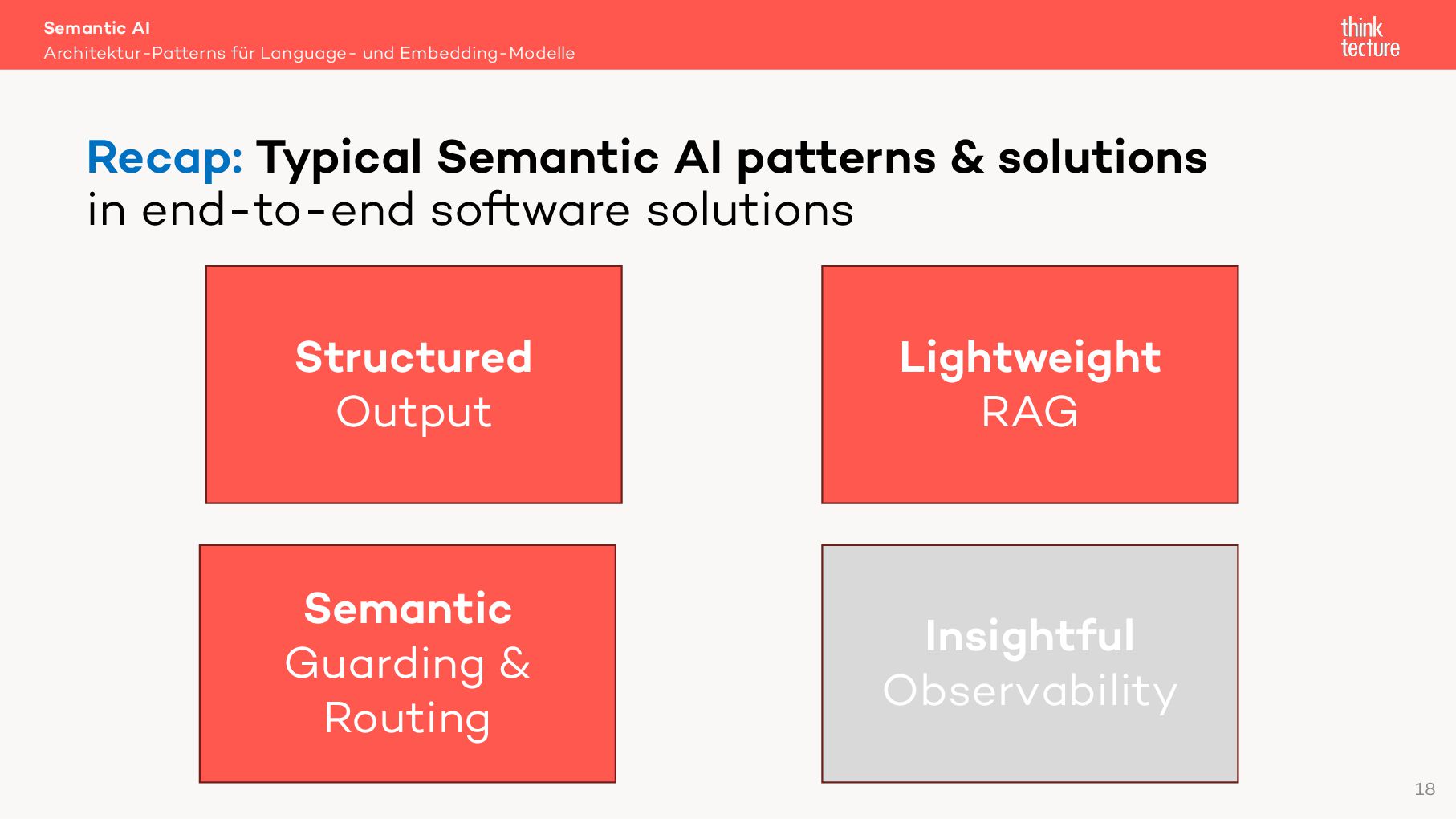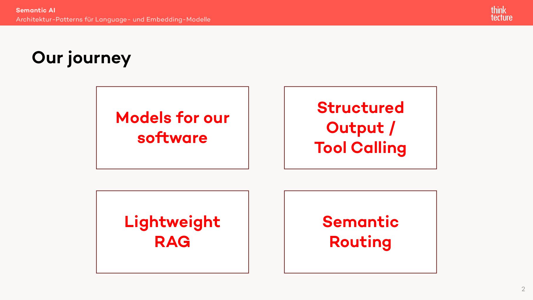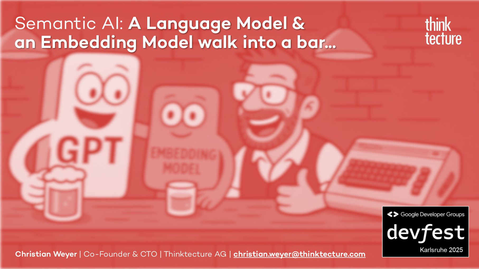 Semantic AI als Erweiterung von Generative AI kann der Schlüssel zur Integration von KI in eigene Lösungen sein. In diesem Vortrag zeigt Christian Weyer praxisnahe Architektur-Patterns und Ansätze für die Nutzung von Large und Small Language Models wie GPT oder Llama sowie Embedding-Modellen in modernen Software-Architekturen. Wichtige Konzepte wie Semantic Routing, Light-weight RAG und Structured Output werden anhand eines End-to-End-Systems mit mehreren Services und Client-Anwendungen demonstriert. Entwickler und Architekten erhalten einen pragmatischen Überblick über die mögliche Umsetzung in eigenen Projekten.