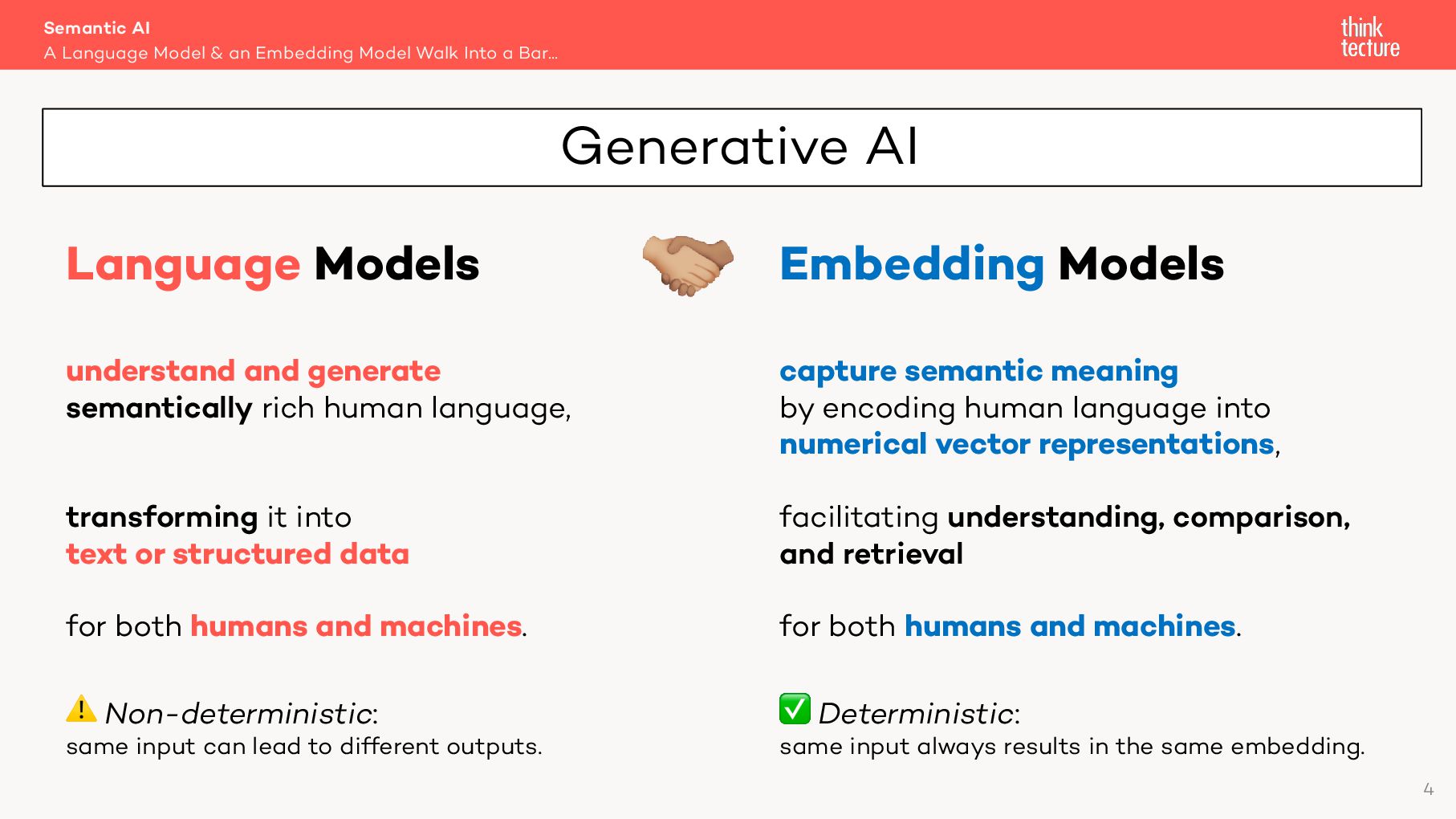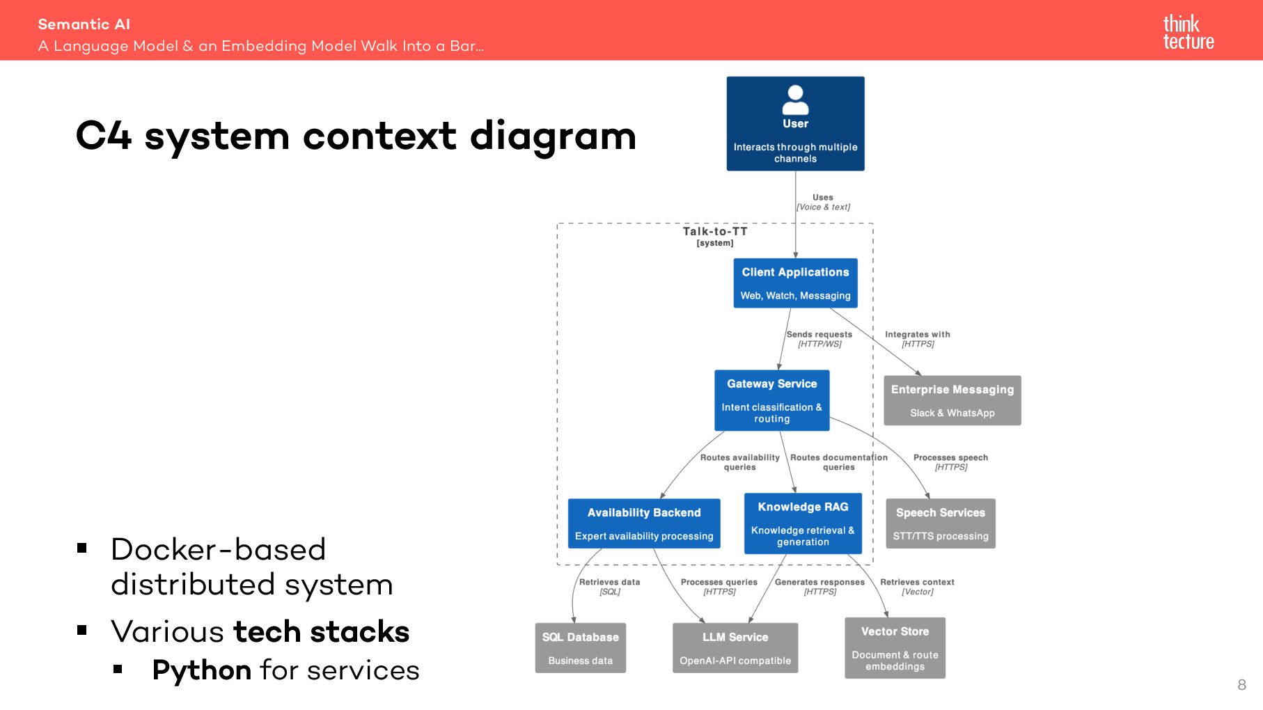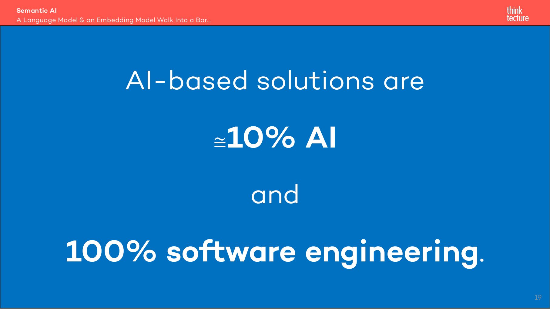 Semantic AI als Erweiterung von Generative AI kann der Schlüssel zur Integration von KI in eigene Lösungen sein. In diesem Vortrag zeigt Christian Weyer praxisnahe Architektur-Patterns und Ansätze für die Nutzung von Large und Small Language Models wie GPT oder Llama sowie Embedding-Modellen in modernen Software-Architekturen. Wichtige Konzepte wie Semantic Routing, Light-weight RAG und Structured Output werden anhand eines End-to-End-Systems mit mehreren Services und Client-Anwendungen demonstriert. Entwickler und Architekten erhalten einen pragmatischen Überblick über die mögliche Umsetzung in eigenen Projekten.