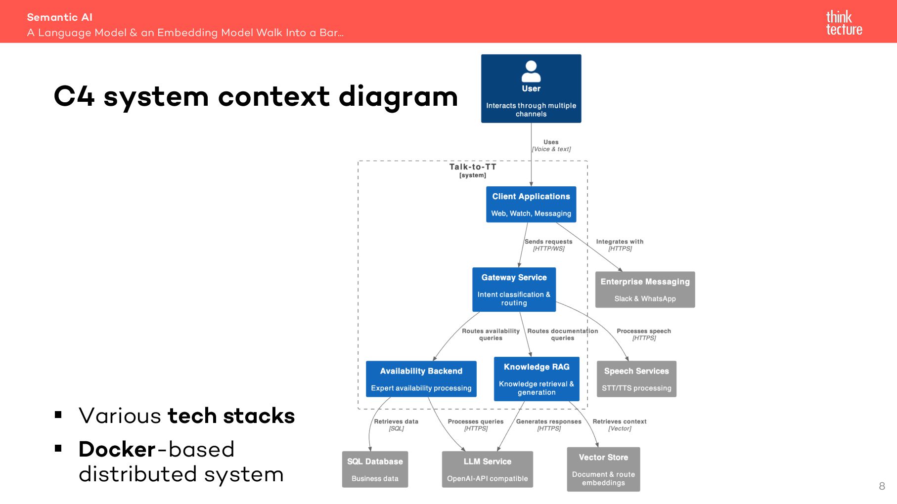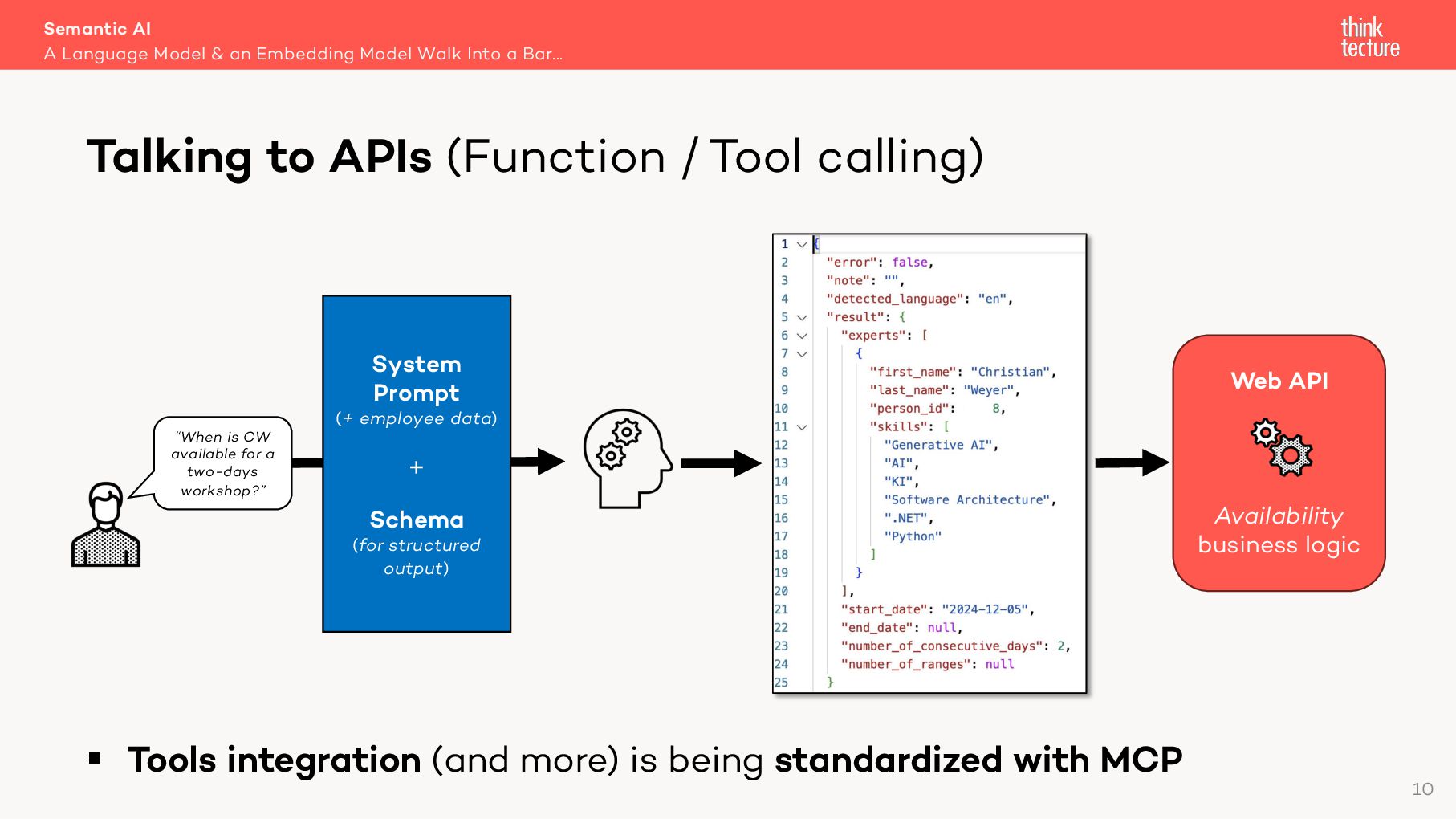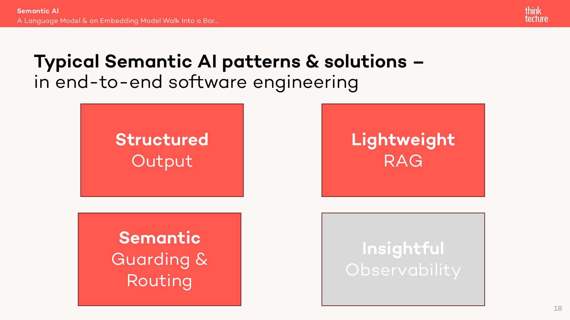 Semantic AI als Erweiterung von Generative AI kann der Schlüssel zur Integration von KI in eigene Lösungen sein. In diesem Vortrag zeigt Christian Weyer praxisnahe Architektur-Patterns und Ansätze für die Nutzung von Large und Small Language Models wie GPT oder Llama sowie Embedding-Modellen in modernen Software-Architekturen. Wichtige Konzepte wie Semantic Routing, Light-weight RAG, Structured Output und Observability werden anhand eines End-to-End-Systems mit mehreren Services und Client-Anwendungen demonstriert. Entwickler und Architekten erhalten einen pragmatischen Überblick über die mögliche Umsetzung in eigenen Projekten.