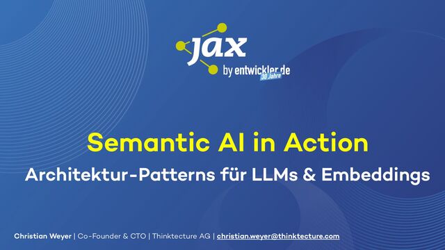 Semantic AI als Schlüssel zur Integration von KI in eigene Lösungen. In diesem Vortrag zeigt Christian Weyer praxisnahe Architektur-Patterns und Ansätze für die Nutzung von Large und Small Language Models wie GPT oder Llama sowie Embedding-Modellen in modernen Software-Architekturen. Wichtige Konzepte wie Semantic Routing, Semantic Search & RAG, Structured Output und Observability werden anhand eines End-to-End-Systems mit mehreren Services und Client-Anwendungen demonstriert. Entwickler und Architekten erhalten einen pragmatischen Überblick über die mögliche Umsetzung in eigenen Projekten.