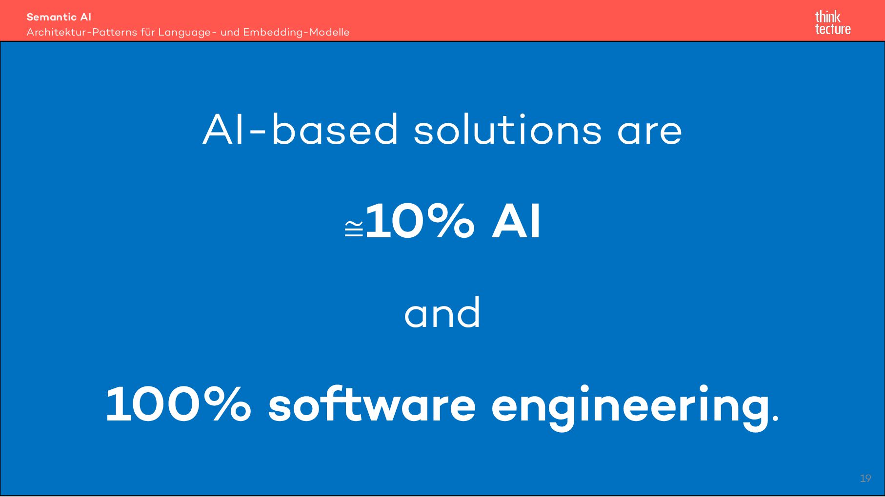 Semantic AI als Erweiterung von Generative AI kann der Schlüssel zur Integration von KI in eigene Lösungen sein. In diesem Vortrag zeigt Christian Weyer praxisnahe Architektur-Patterns und Ansätze für die Nutzung von Large und Small Language Models wie GPT oder Llama sowie Embedding-Modellen in modernen Software-Architekturen. Wichtige Konzepte wie Semantic Routing, Light-weight RAG, Structured Output und Observability werden anhand eines End-to-End-Systems mit mehreren Services und Client-Anwendungen demonstriert. Entwickler und Architekten erhalten einen pragmatischen Überblick über die mögliche Umsetzung in eigenen Projekten.