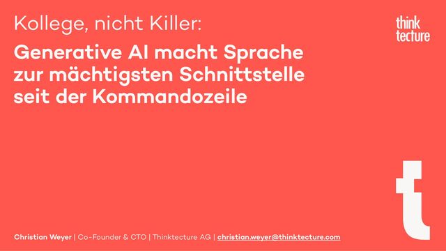 support software engineers in their daily life § Ideation § Sparring, pair programming § Understanding, documenting § But: You still need to know how to design, create, build, and debug software § If you are not using GenAI-assisted development tools… you will be left behind Kollege, nicht Killer Generative AI macht Sprache zur mächtigsten Schnittstelle seit der Kommandozeile Developers evolve with AI Agents 20 https://www.linkedin.com/posts/migueloteropedrido_diary-of-a-vibe-coder-%F0%9D%90%83%F0%9D%90%9A%F0%9D%90%B2-%F0%9D%9F%8F-opened-cursor-activity-7317932234521427970-EtZn
