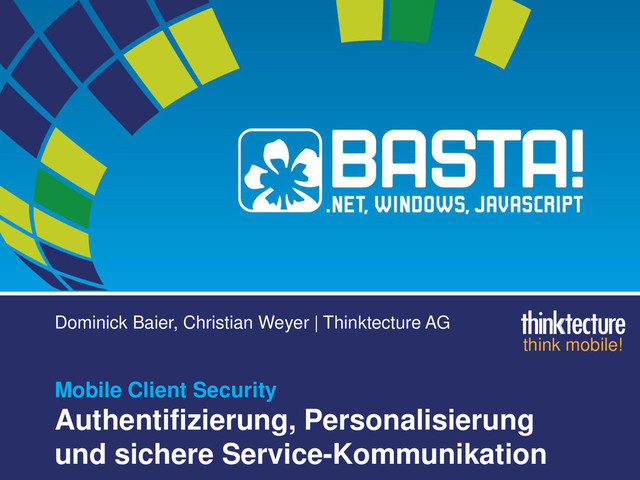 Selbstverständlich müssen wir unsere mobilen Apps – bzw. die dahinter liegenden Web-APIs – absichern. Wenn wir in klassischen Systemen bisher mit "Username/Passwort" oder Windows Authentifizierung in der Anwendung gedacht haben, so müssen wir dies bei modernen Business- und mobilen Apps ändern. In dieser Session zeigen Dominick Baier und Christian Weyer architekturelle Wege und Implementierungen auf, um Authentifizierung und Autorisierung und Service Kommunikation sicher über OAuth-2.0 und OpenID Connect-basierte Ansätze abzuwickeln. Darauf aufbauend sehen Sie auch, wie mit der Idee von Tokens und Claims eine für Benutzer einfache Personalisierbarkeit Ihrer App realisiert werden kann – so schlagen Sie zwei Fliegen mit einer Klappe.
