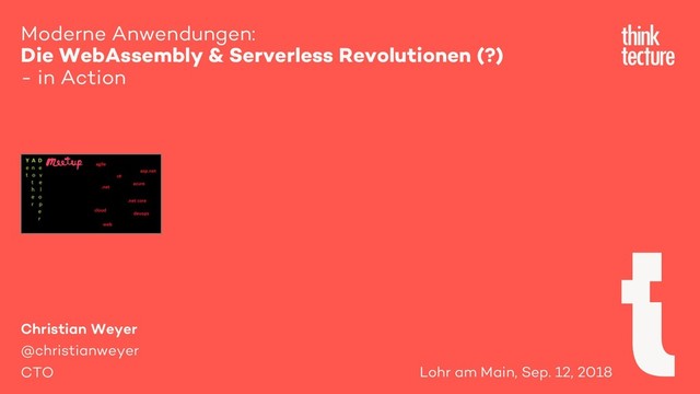 Die Landschaft für moderne Softwareentwicklung verändert sich. Es gibt heute und künftig neue Wege, um echte plattformübergreifende, native-ähnliche webbasierte Client-Anwendungen zusammen mit schlanken Cloud-Architekturen zu erstellen. In dieser Session wird Christian Weyer diese Möglichkeiten beleuchten und einen pragmatischen Überblick auf die Techniken und Technologien geben, die die Zukunft Ihrer Anwendungen beeinflussen können. Kommen und sehen Sie das Potenzial von WebAssembly im Browser und Serverless Computing in Azure - in Action!