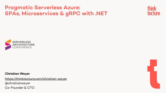 Building & running modern business applications – with less tedious tasks, and less infrastructure needs: this is what a .NET developer strives for. In this session, Christian shows a pragmatic way of creating distributed web- and cloud-based applications with a serverless mindset. Join and see how to use C# for building both, APIs & services as well as web-based SPAs, with ASP.NET Core gRPC services and Blazor WebAssembly clients, all running serverless. Developer productivity where it belongs: one programming language (with your favorite IDE!). Strongly typed client-server communication (IntelliSense, yay!). No servers, no clusters (Serverless, FTW!). Too good to be true? Let’s see.