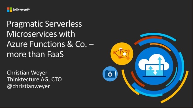 FaaS is hip, Serverless is cool, Microservices are all the hype. What about building Microservices with Serverless? Based on some well-accepted principles we can use Serverless architectures and technologies to build highly focused Microservices (which we might call Nanoservices, for now). Christian Weyer will show you a pragmatic approach on how to build Nanoservices with Azure Functions, Azure Service Bus & friends. Join him to see Serverless Azure in action, with .NET Core, JavaScript and Java.