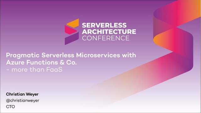 Why does it have to be Serverless versus Microservices? Couldn’t it be rather Microservices with Serverless? Based on some of the well-accepted principles of Microservices, we can use Serverless architectures and technologies to build highly focused Microservices – which we might call Nanoservices. Christian Weyer will show you a pragmatic approach on how to build Nanoservices with Azure Functions, Azure Service Bus, Azure Storage and friends. Join him to see Serverless Azure in action, with .NET Core, JavaScript and Java – beyond the typical Functions-as-a-Service examples.
