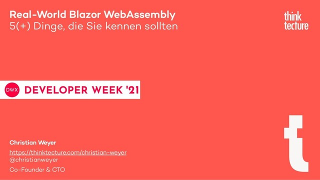 In diesen 60 Minuten spricht Christian Weyer über fünf Erkenntnisse aus dem praktischen Einsatz von Blazor WebAssembly - mit Demos, live und in Farbe. Auch wenn für Sie vielleicht nur ein einziges "Ding" dabei ist, das sie neu lernen: diese Session sollte sich dennoch lohnen ;-)