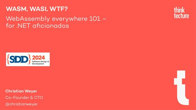 These scenarios include: running native code in the web, secure isolated execution environments, powerful instantiation & execution engines, and lightweight server-side & serverless runtime environments. All this is possible with almost every programming language and framework, including C# and .NET. Come by and get an idea of why, what, and how WebAssembly, WASI & co. will make a difference in a world in and also beyond the browser.