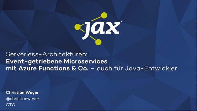Wie bitte? Microsofts Azure Cloud auf der JAX? Ja, in der Tat. Denn nicht immer muss oder soll es AWS (Amazon Web Services) oder GCP (Google Cloud Platform) sein. Azure bietet mittlerweile eine holistische Plattform für so gut wie jede Cloud-Anforderung an. Auch und vor allem in den Bereichen Cloud Native und Serverless investiert Microsoft sehr viel. In dieser Session zeigt Christian Weyer von Thinktecture – ohne großes Marketing-Tamtam – neben den Grundlagen vor allem typische Anwendungsszenarien für Azure Functions, Azure Service Bus und Co. Fokus soll dabei auf Event-getriebene Microservices-Architekturen liegen. Lehnen Sie sich also zurück und sehen Sie "die andere Cloud" – auch mit Java – in Action.