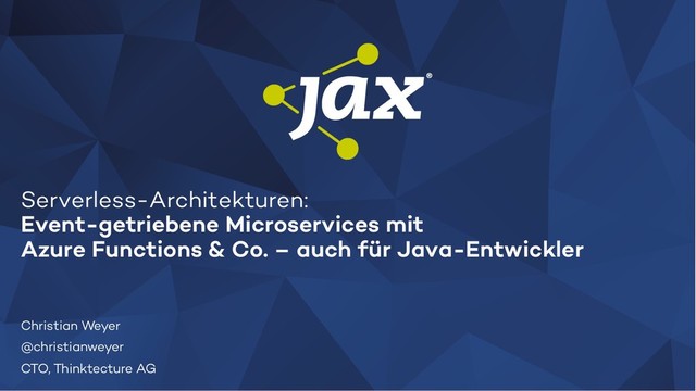Warum muss es "Serverless oder Microservices" sein? Es sollte vielmehr "Microservices mit Serverless" heißen! Basierend auf einigen der allgemein anerkannten Prinzipien von Microservices können wir serverlose Architekturen und Technologien verwenden, um hochfokussierte Microservices zu erstellen - nennen wir sie mal Nanoservices. Christian Weyer zeigt Ihnen einen pragmatischen Ansatz zum Erstellen von Nanoservices mit Azure Functions, Azure Service Bus, Azure Storage und weiteren Diensten & Tools. Erleben Sie Serverless Azure mit .NET Core, JavaScript und Java in bester Cross-Plattform-Manier in Aktion - jenseits der typischen Functions-as-a-Service-Beispiele.