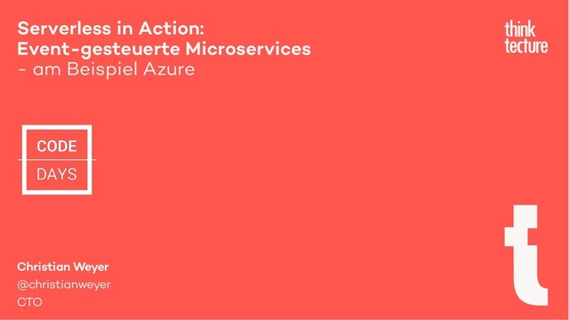 Wie bitte? Ohne Server? Ähm... Ja, in der Tat. Der Serverless-Ansatz für Microservices verspricht eine niedrige Hürde, um den Einstieg zu finden und auch um ans Ziel zu kommen. Dabei ist Serverless jedoch nicht für jeden und alles geeignet. In diesem Vortrag zeigt Christian Weyer die Grundlagen von Serverless mit Azure und .NET Core anhand eines realistischen Anwendungsbeispiels. Auf Basis erprobter Design Patterns können Sie mit Azure Functions, Azure Event Grid, Azure Cosmos DB, Azure Storage & Co. in kurzer Zeit einfache & komplexe Anwendungen designen und implementieren - lokal und in der Cloud. Einer der Schlüssel ist hierbei das Denken in Events, über die Daten übertragen, verarbeitet und weitergeleitet werden. Wohnen Sie dieser Session bei und bilden Sie sich Ihre Meinung - eventuell lernen Sie die Basis Ihrer neuen Business-Software hier kennen.