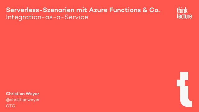 EAI: Enterprise Application Integration § B2B: Business-to-Business communication § B2C: Business-to-Consumer communication § Possible approaches & patterns § Microservices, Nanoservices, Picoservices – WTF? § Event-driven integration § Free choice of technical platform & framework § Can the Cloud offer value here? § Without having to always worry about too many (unnecessary) details… Serverless-Szenarien mit Azure Functions & Co. Integration-as-a-Service Integration-as-a-Service ?