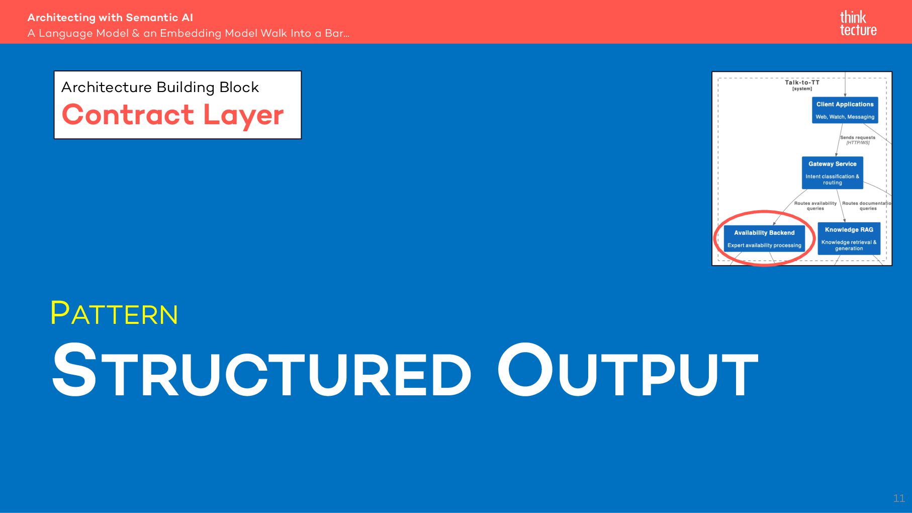 Model Walk Into a Bar... PATTERN STRUCTURED OUTPUT 11 Architecture Building Block Contract Layer