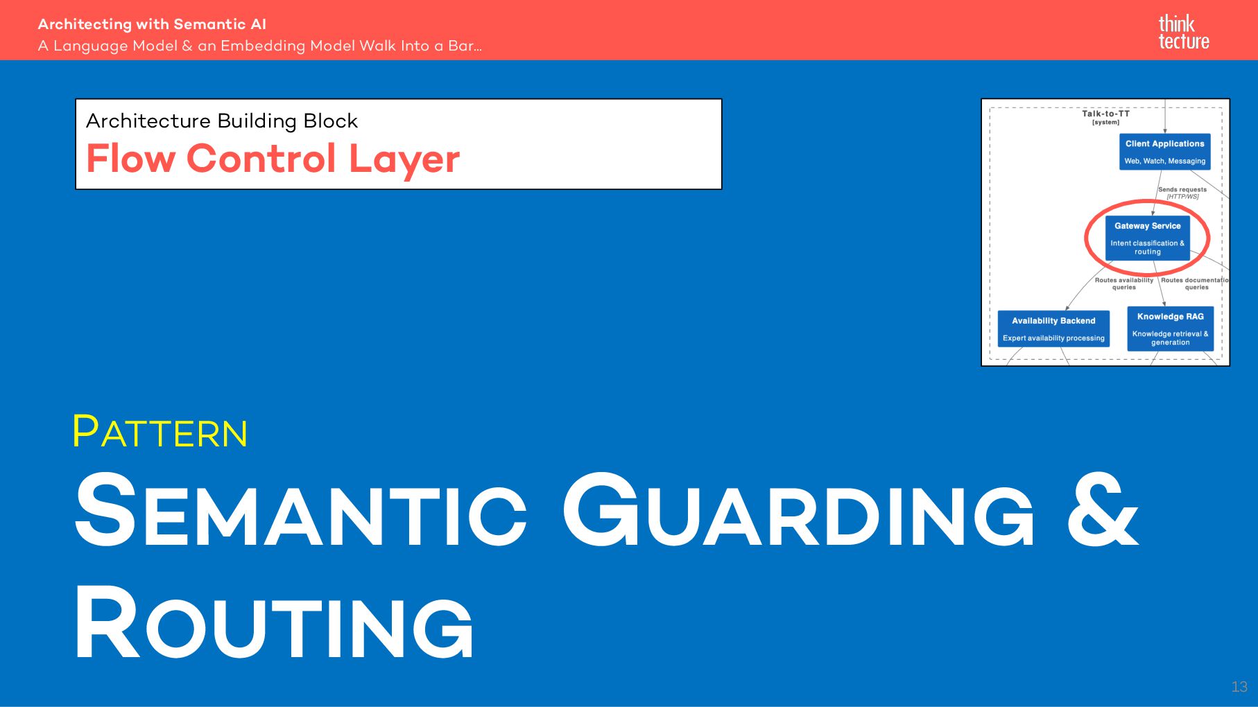 Model Walk Into a Bar... PATTERN SEMANTIC GUARDING & ROUTING 13 Architecture Building Block Flow Control Layer