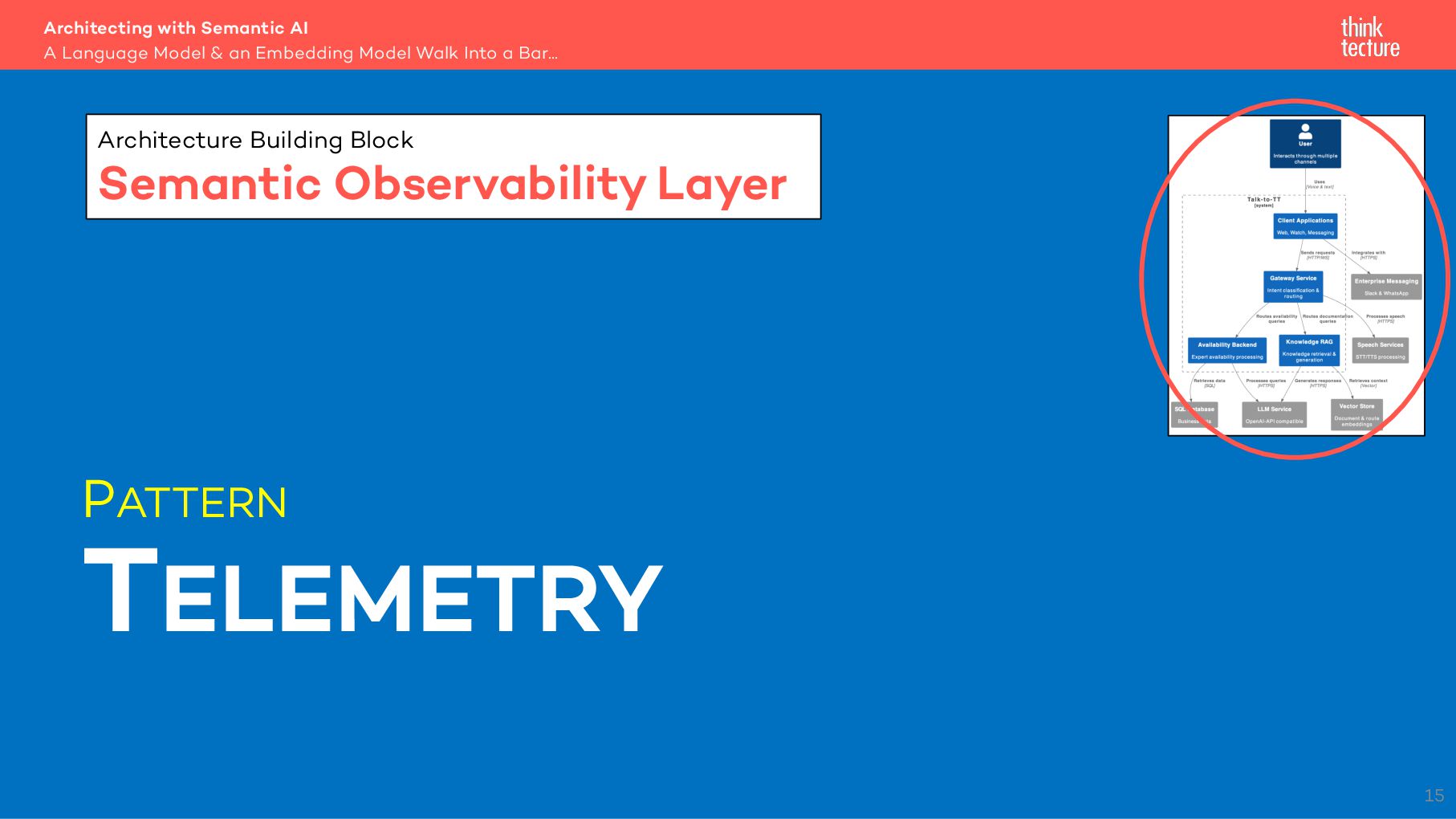 Model Walk Into a Bar... PATTERN TELEMETRY 15 Architecture Building Block Semantic Observability Layer