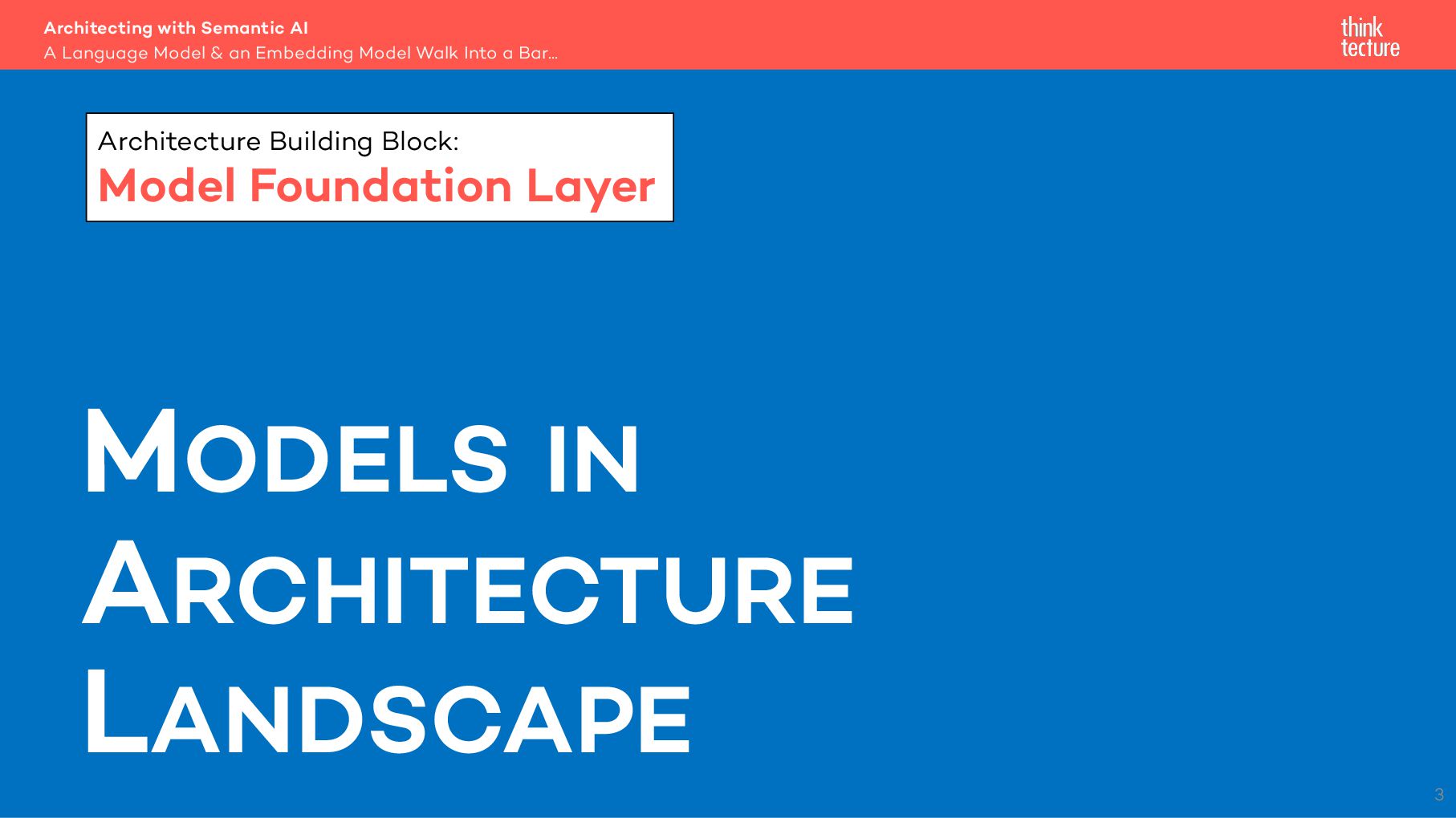 Model Walk Into a Bar... MODELS IN ARCHITECTURE LANDSCAPE 3 Architecture Building Block: Model Foundation Layer