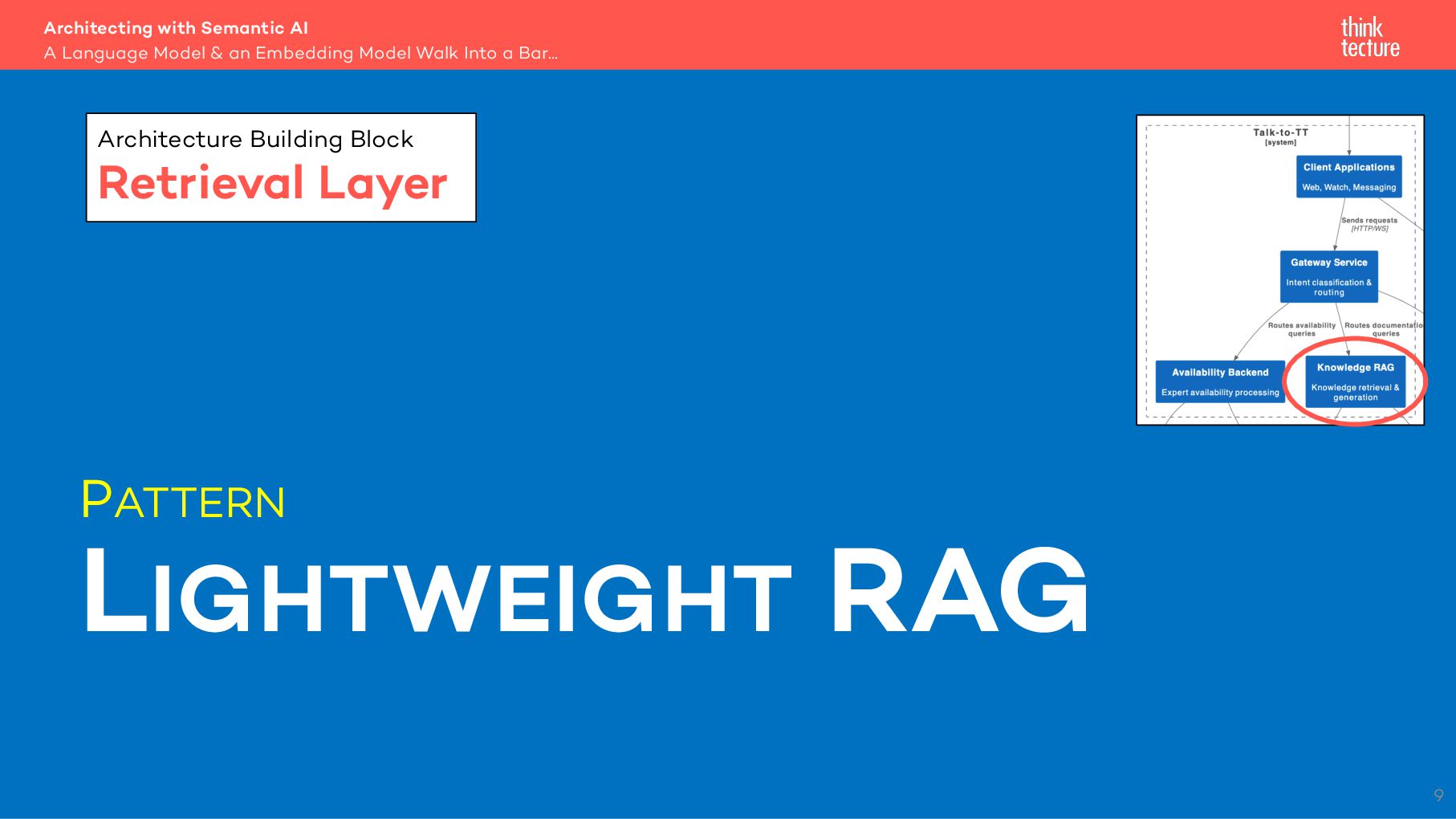 Model Walk Into a Bar... PATTERN LIGHTWEIGHT RAG 9 Architecture Building Block Retrieval Layer