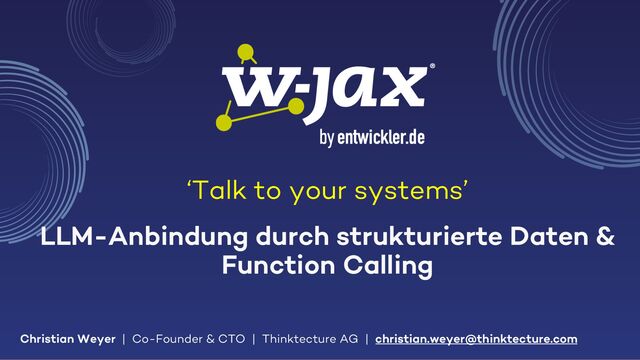Ja, es gibt mehr zu entdecken für Generative AI & Large Language Models (LLMs) als das bekannte "Sprechen" mit eigenen Daten (auch bekannt als RAG). Basierend auf ihrem Verständnis der menschlichen Sprache können LLMs genutzt werden, um innovative Interaktionen für Anwendungen und Systeme zu realisieren. In dieser Session zeigt Christian, wie Sie strukturierte Datenausgaben mit Datenschemata und Funktionsaufrufen nutzen, um Ihre APIs und Applikationen mit der Power von LLMs zu integrieren. Sehen Sie, wie die transformative Natur von Generative AI auch Ihren Lösungen helfen kann. Kommen Sie vorbei und lassen Sie uns mit Anwendungen und Systemen sprechen - im wahrsten Sinne des Wortes.