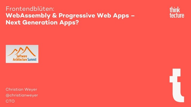 Gesetzt den Fall, Sie halten Cross-Plattform SPAs (Single Page Applications) für eine gute Idee, könnte diese Night Session in der Tat interessant für Sie werden. Lassen Sie uns über das Web als Plattform reden und darüber, wie wir JavaScript-basierte Browseranwendungen unter Umständen noch "besser" machen können. Die Web- und Browserplattformen haben die Art und Weise verändert, wie wir Anwendungen erstellen können, und diese Plattformen haben sich in den letzten 5 Jahren erheblich weiterentwickelt. Für SPAs, die im Browser laufen, stehen mehr und mehr native Funktionen zur Verfügung – eine großartige Basis für moderne Applikationen gemäß der Idee von Progressive Web Apps (PWA). Zudem haben wir mit dem zunehmenden Reifegrad von WebAssembly (WASM) als Standard allmählich leistungsstarke Tools in unserer Hand, um die nächste Generation von webbasierten Anwendungen zumindest mal anzudenken. In dieser Night Session wird Christian Weyer sowohl über PWAs als auch über die Basis und Möglichkeiten von WebAssembly als Bytecode für alle gängigen modernen Browser sprechen. Erfahren Sie, wie Sie WASM zum Ausführen von C/C++, Java oder C#/.NET-Code im Browser ohne Plug-in nutzen können – sei es aus Performance- oder Wiederverwendungsgründen. Dies kann sowohl bei Greenfield- als auch bei Brownfield-Projekten ein interessanter Ansatz sein. Lehnen Sie sich zurück und schauen Sie zu, welche Möglichkeiten PWAs und WebAssembly dem Web verleihen könnten.