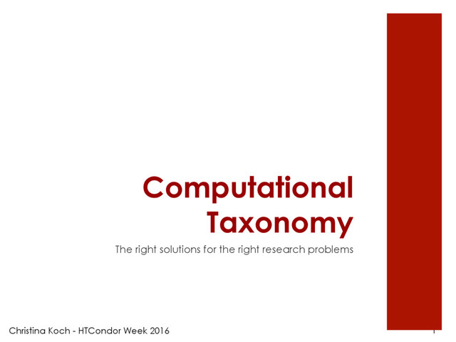 tools to use? ¡ Understanding computational research problems is a first step to providing appropriate solutions. ¡ Benefits include: ¡ Better resource utilization ¡ A broader range of computing- enabled researchers