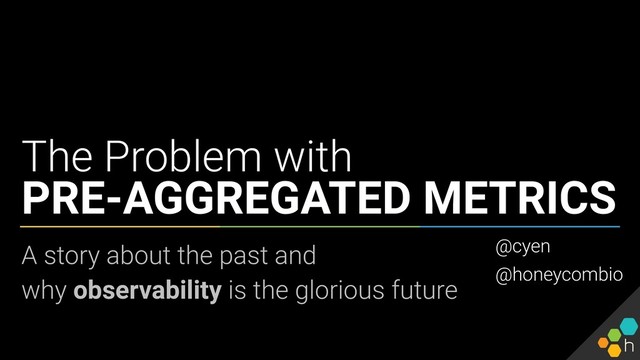 Pre-aggregated metrics and time series form the backbone of many monitoring setups and have many redeeming qualities, but simply aren't sufficient for capturing the many ways things can go wrong in modern or complex systems. Problems inherent in the concepts behind and implementation of pre-aggregated metrics prevent them from being effective for any sort of debugging or diagnostics; we'll talk about why that is, and what techniques we should be leaning on instead.