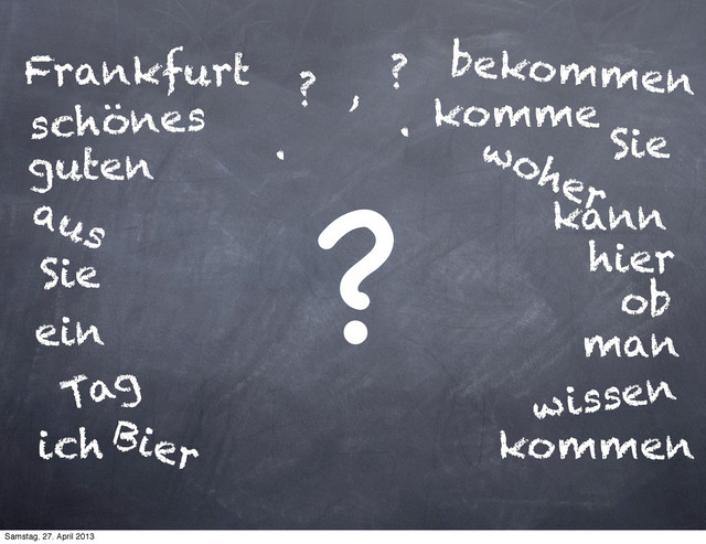wissen Sie ob man hier ein schönes Bier bekommen kann . ? , ? 3 . Samstag, 27. April 2013