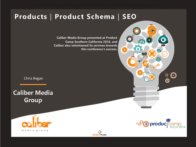 Caliber Media Group Product Schema SEO presentation to Southern California ProductCamp2014 Product Managers and Project Managers Symposium, Anaheim CA. This deck is also found here: http://blog.calibermediagroup.com/2015-seo-structured-data-schema-common-sense/