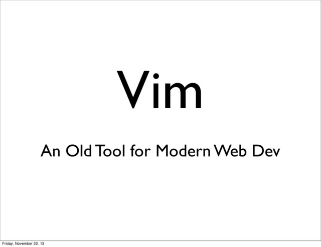 - Yank • c - Change • v - Visually select • gU - Uppercase • etc • i’ - Inside quotes • w - end of the word • iw - inner word • aw - a word • t<char> - unTil char • f<char> - find char • ap - a paragraph • 2j - down two lines • etc Friday, November 22, 13