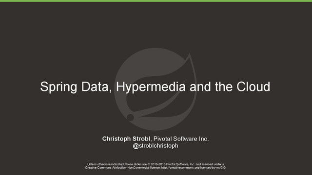 Inc. and licensed under a Creative Commons Attribution-NonCommercial license: http://creativecommons.org/licenses/by-nc/3.0/ Spring Data, Hypermedia and the Cloud Christoph Strobl, Pivotal Software Inc. @stroblchristoph