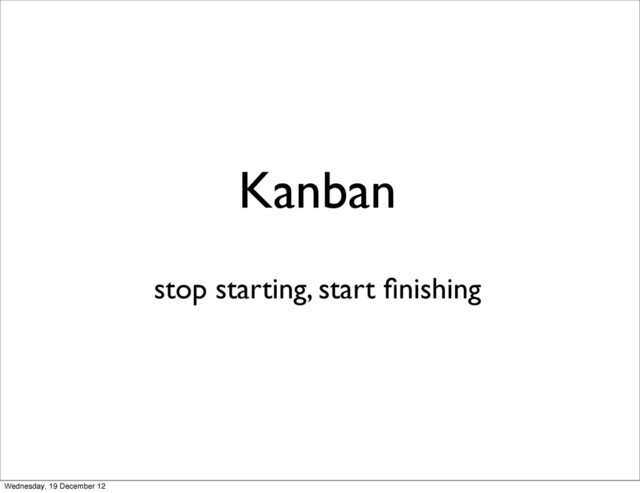 kanban systems to provoke change • Catalyst for evolutionary change • Can help to create an culture of continuous improvement • There is no Kanban Software Development Process or Kanban Project Management Method Wednesday, 19 December 12