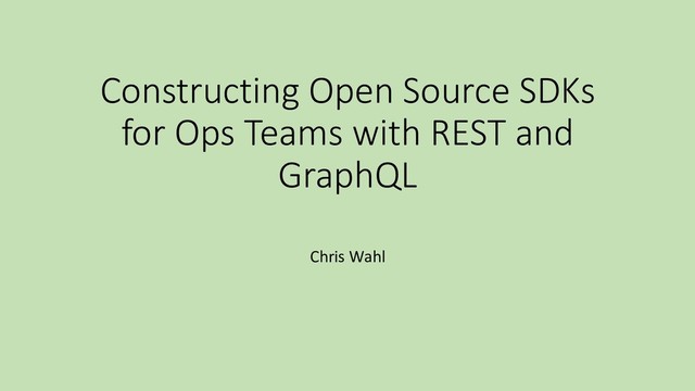 Operations teams are the front line team that have to install, configure, manage, and maintain a complex set of infrastructure and services. Getting a solid, well-documented SDK into their hands can turn manual, painful processes into simple automation tasks. However, as many APIs are shifting from REST to GraphQL, new approaches to tooling are often required. In this session, you’ll hear about how a small team of engineers builds and maintains a collection of open source SDKs focused on operations teams and how they added support for GraphQL endpoints.
