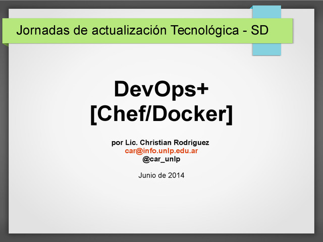 y puesta a punto en producción • Escasez de recursos en nuevas tendencias: – Servidores Ruby: unicorn, puma, Apache mod rails / passenger – Caching: varnish – Balanceo: nginx / ha-proxy – Nuevos servicios: Bases NO-SQL, AMQP, etc • Trabajo artesanal en cada servidor. Migrar o actualizar se vuelve una operación de alto riesgo