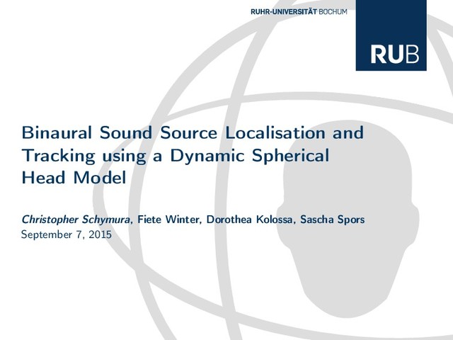 al. (2011), Traa & Smaragdis (2013)] using Kalman filters [Ward et al. (2003), Lu & Cooke (2011)] using particle filters Head rotations can improve localisation by resolving front-back ambiguities (see [Wallach (1940), Blauert(1997)]). 2 / 9