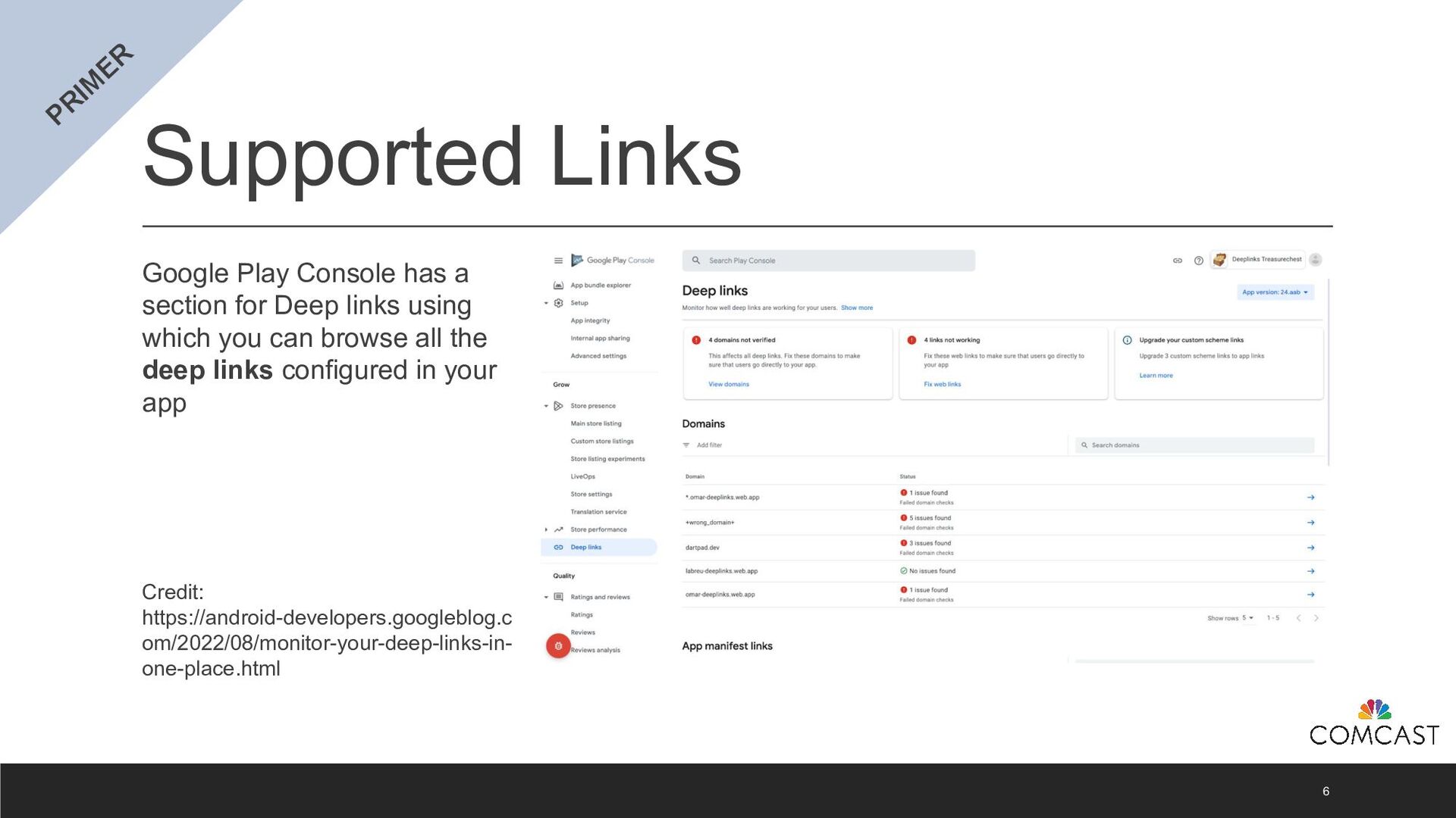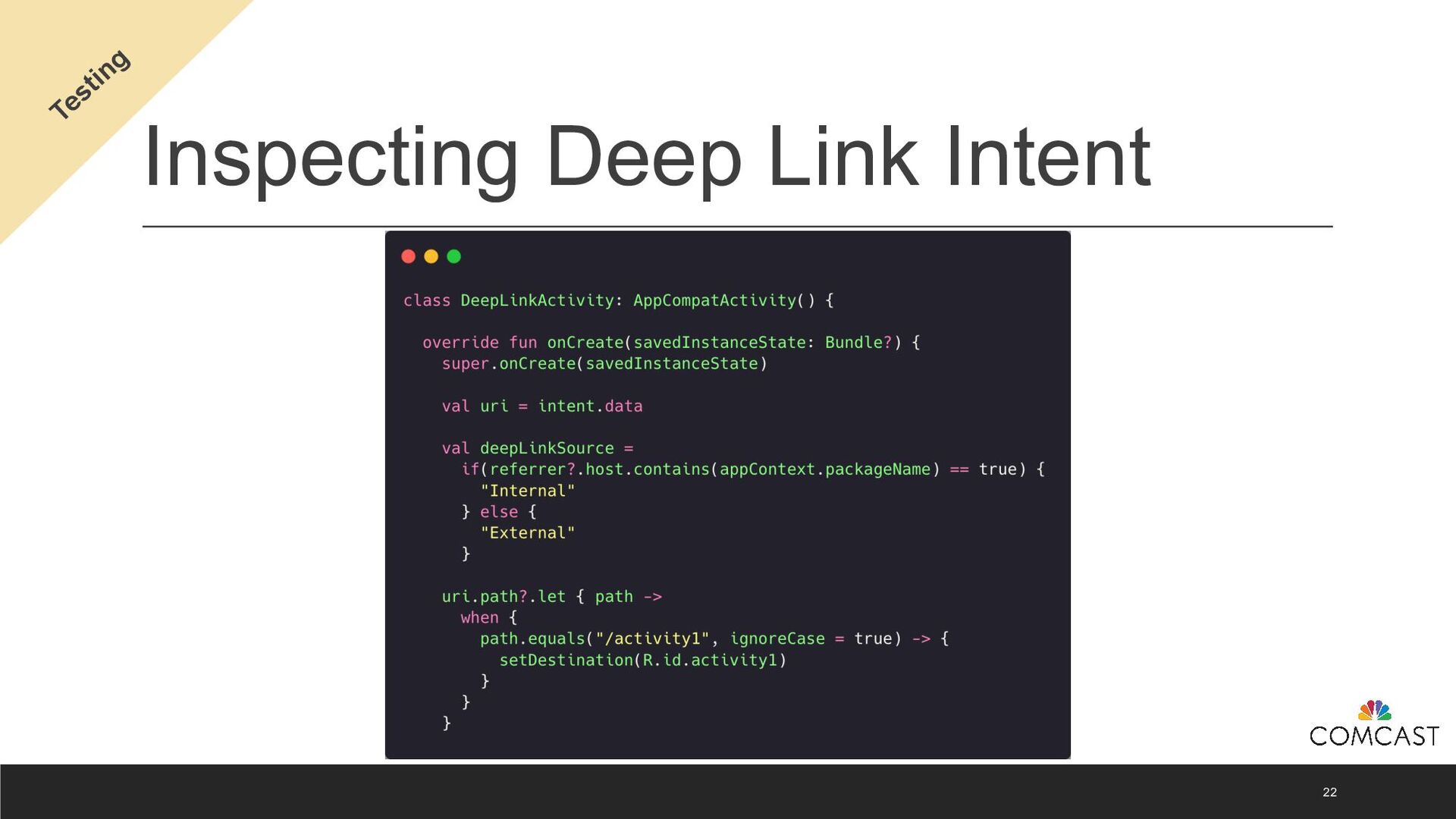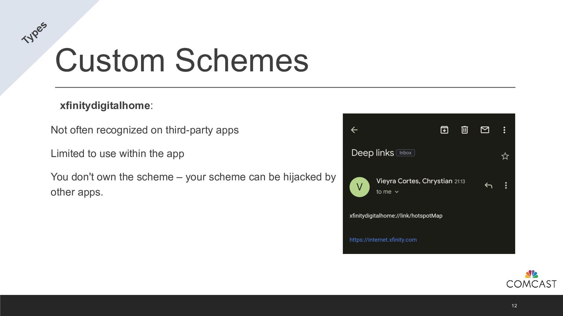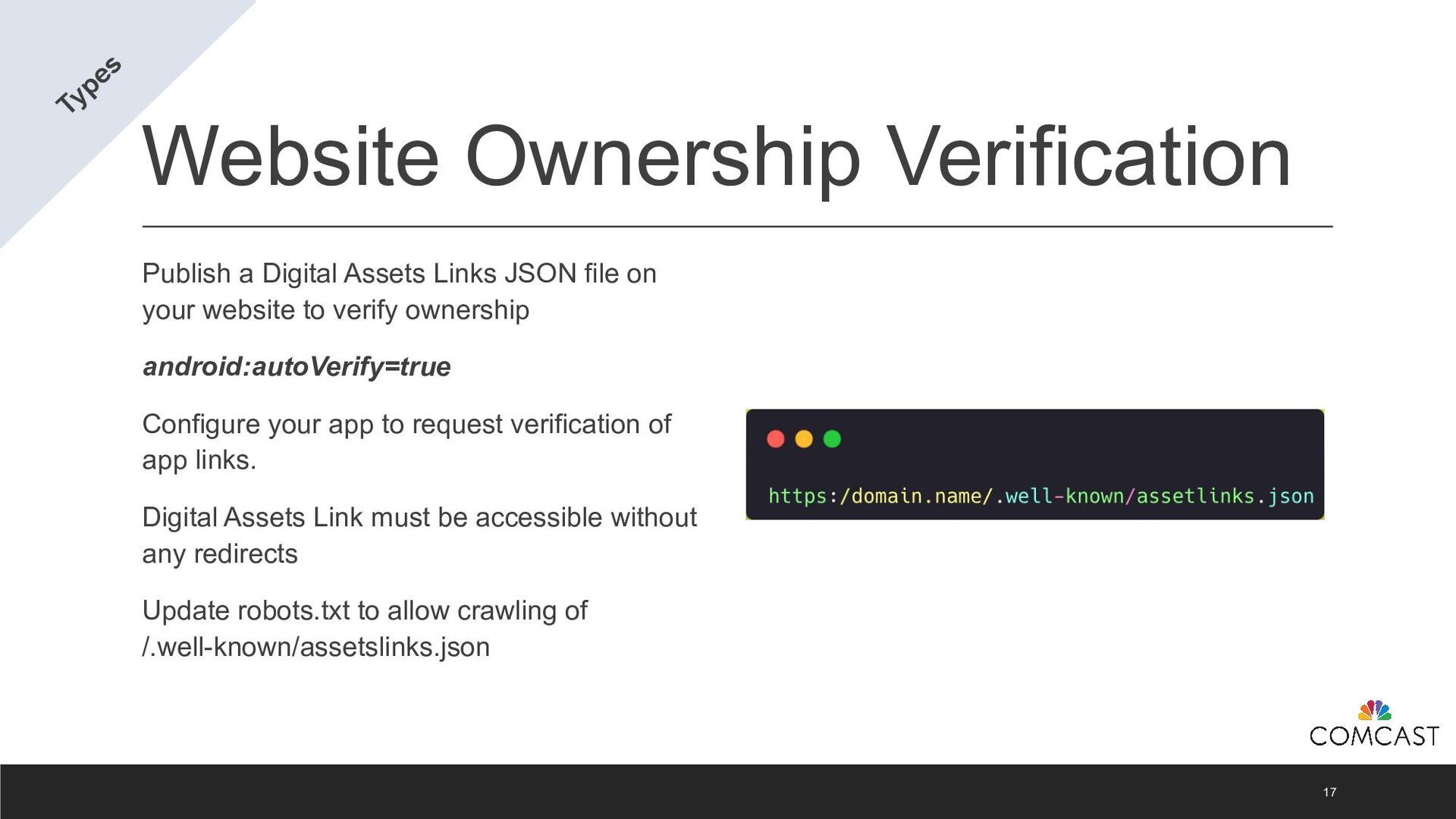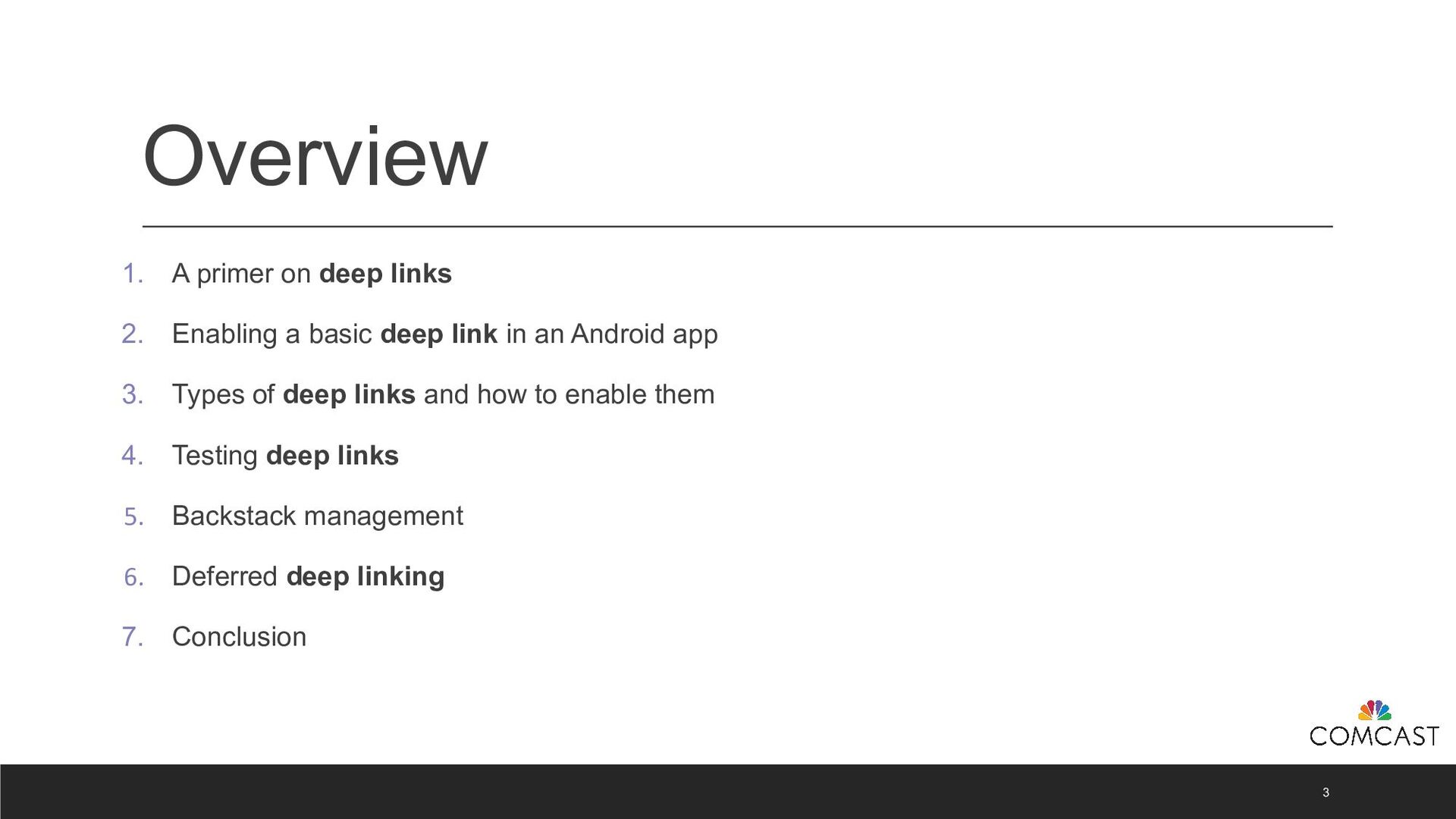 Using the Xfinity app as an example, we will explain how deep links work and describe the process behind creating them. We will also explore the difference between a deep link and an app link, how to associate a website to a mobile app, and how to make an app react to deep links. We will address more advanced concepts, such as: