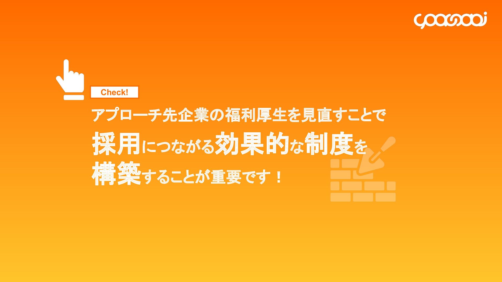 採用につながる効果的な制度を 構築することが重要です! Check! アプローチ先企業の福利厚生を見直すことで