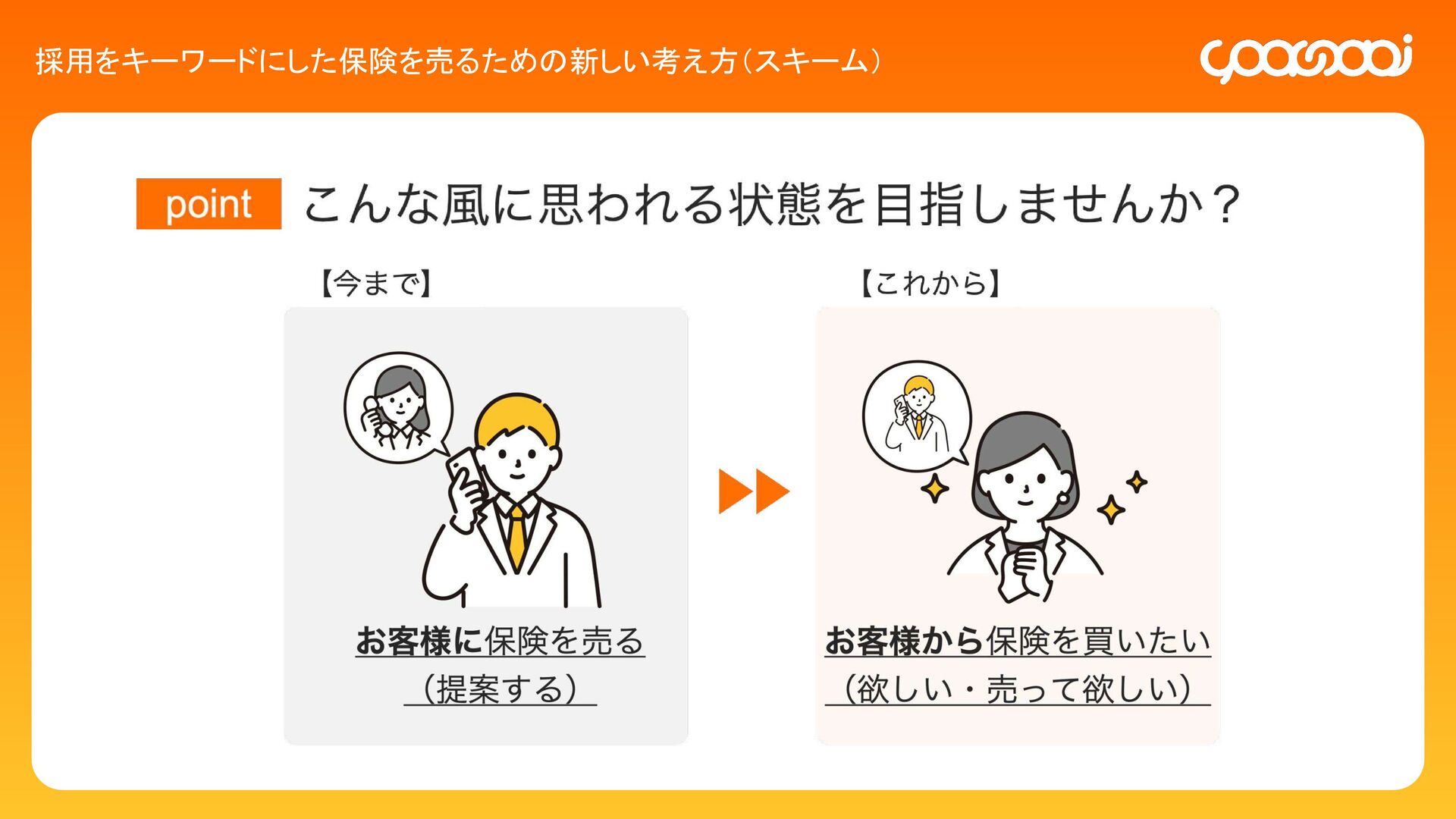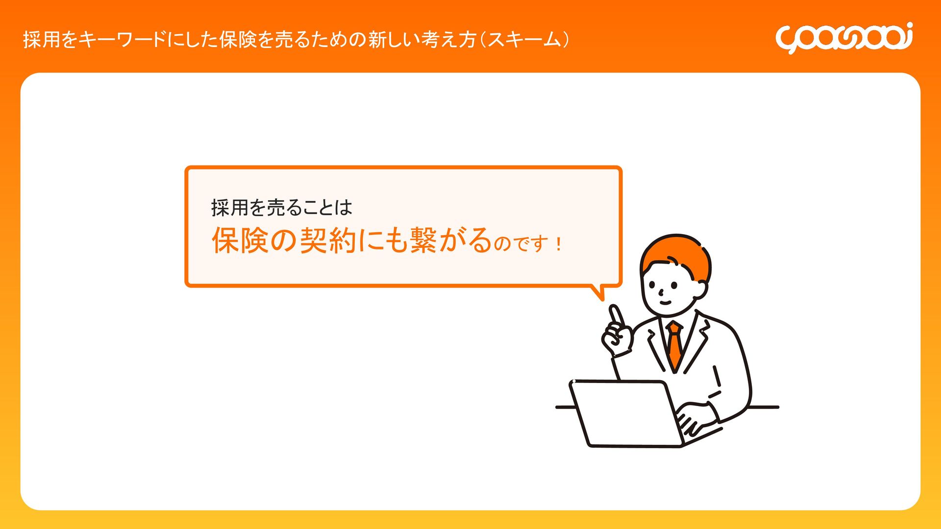 十二分に威力を発揮してくれると考えています。 採用をキーワードにした保険を売るための新しい考え方(スキーム)