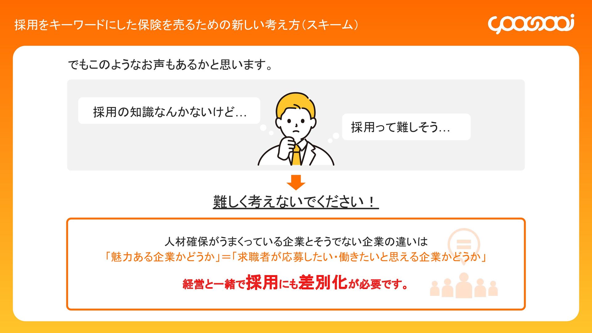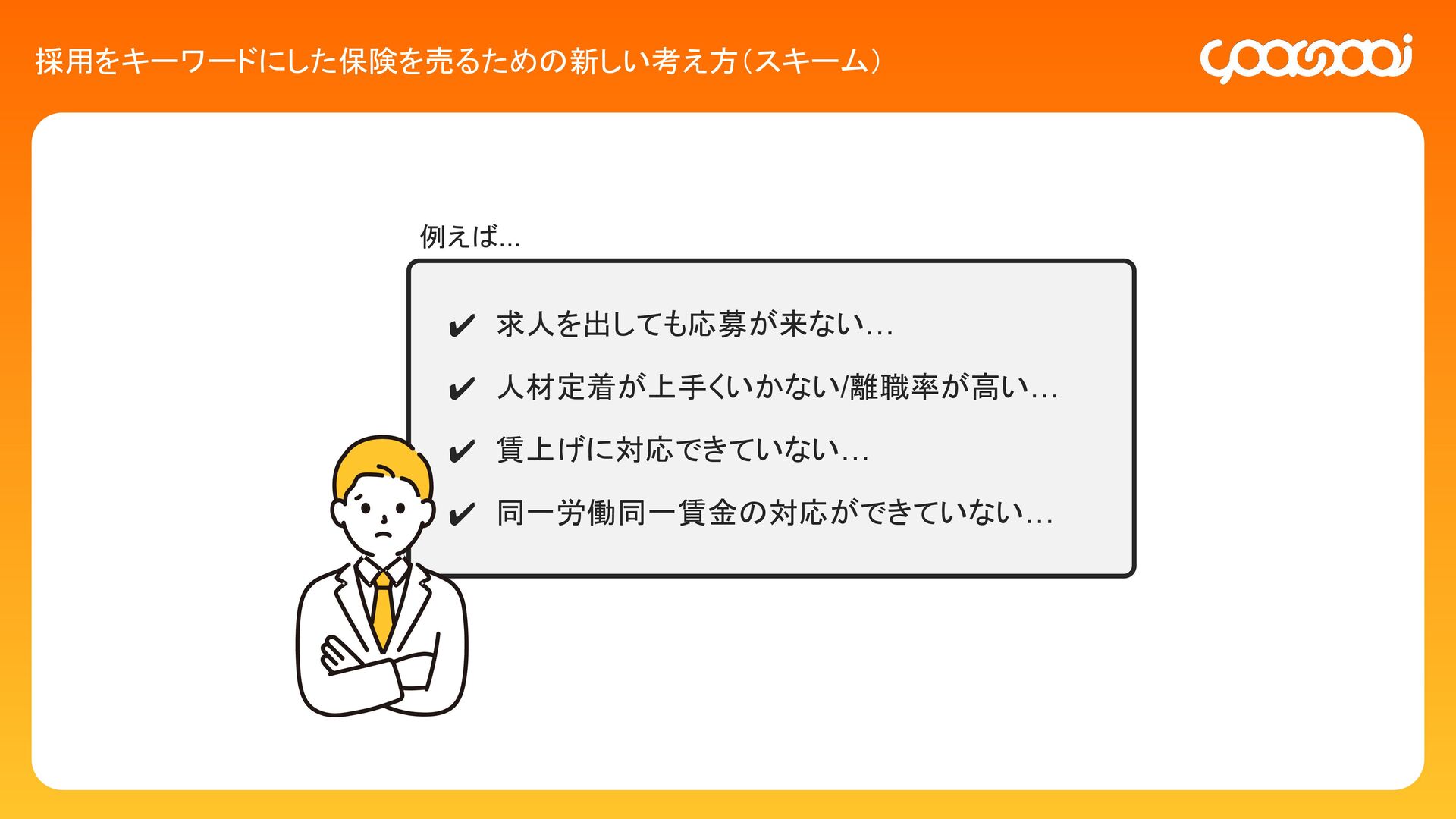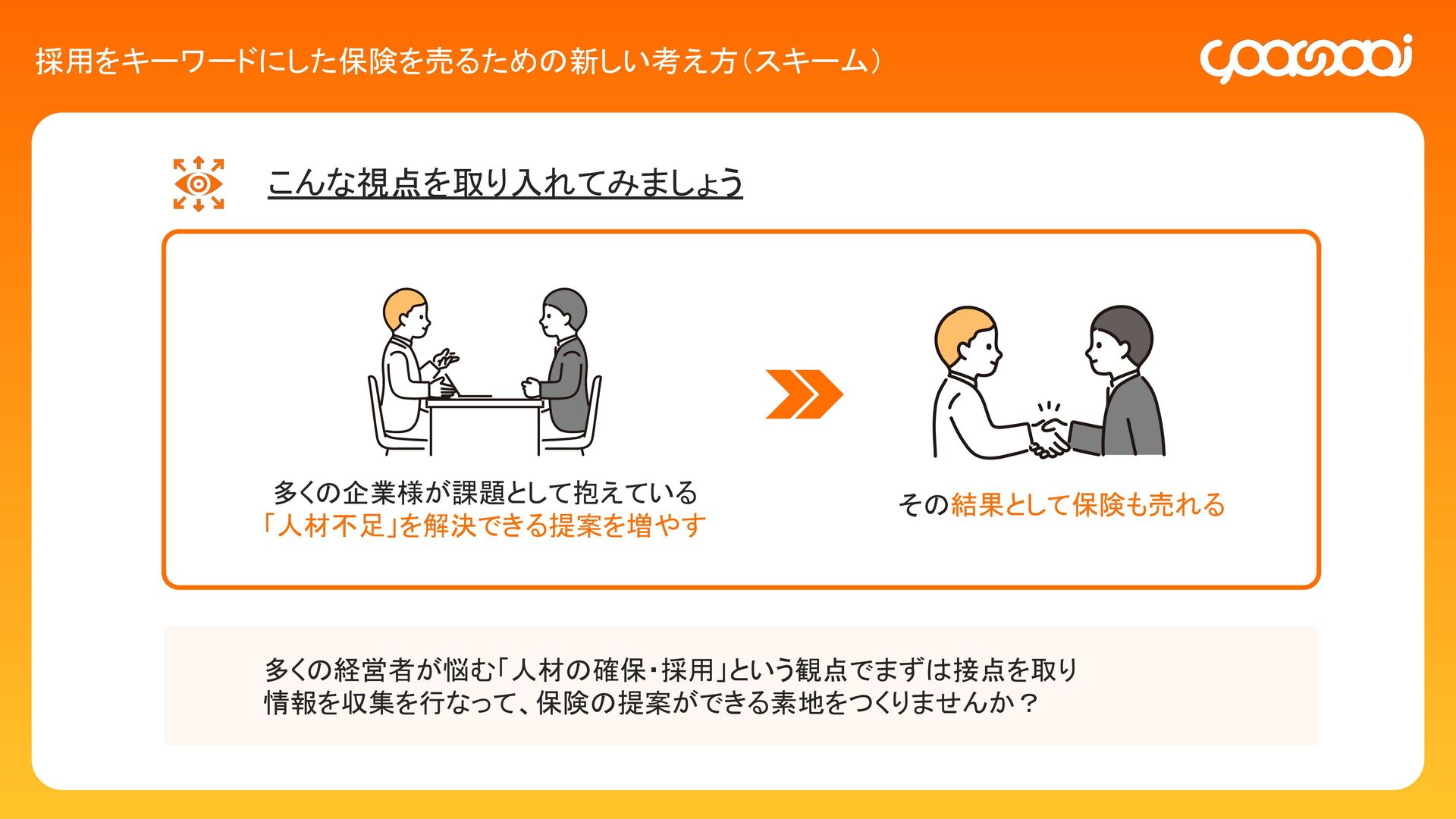 採用をキーワードにした保険を売るための新しい考え方(スキーム)