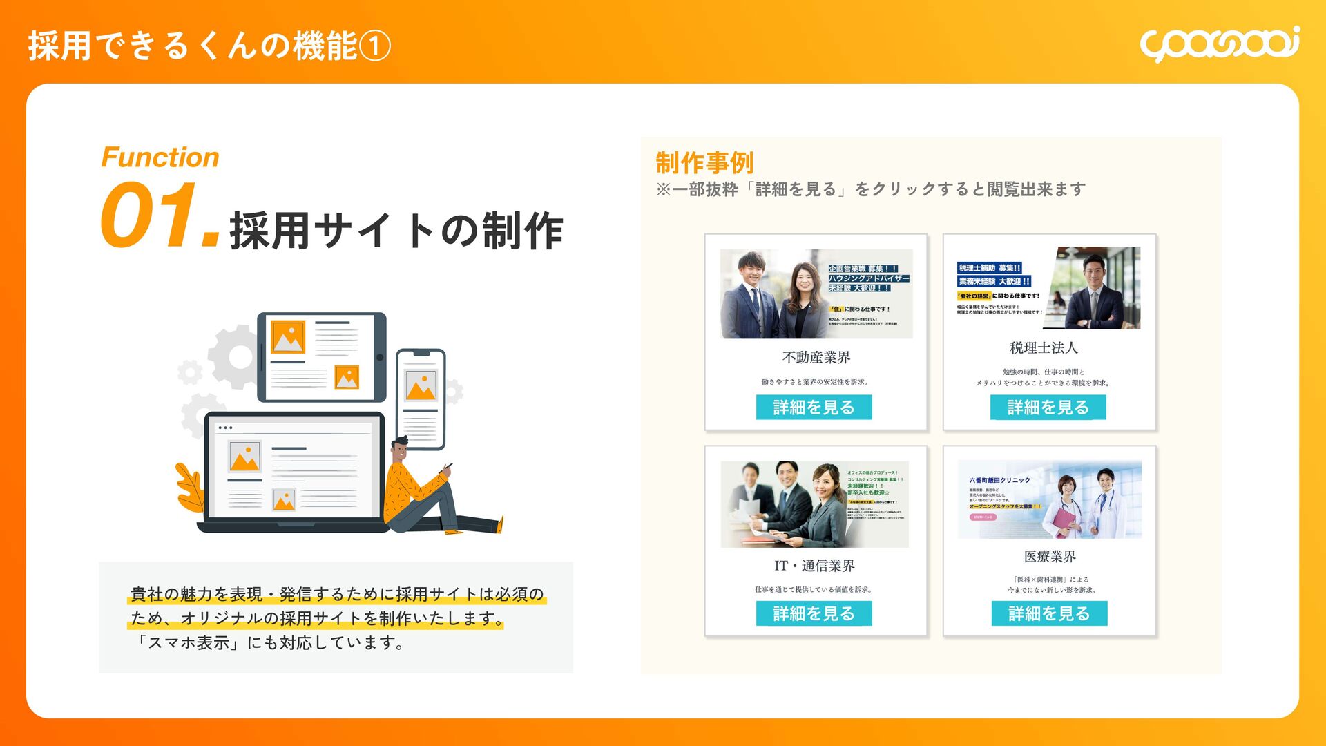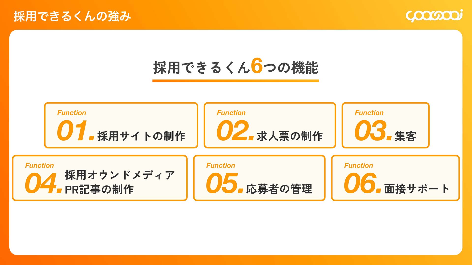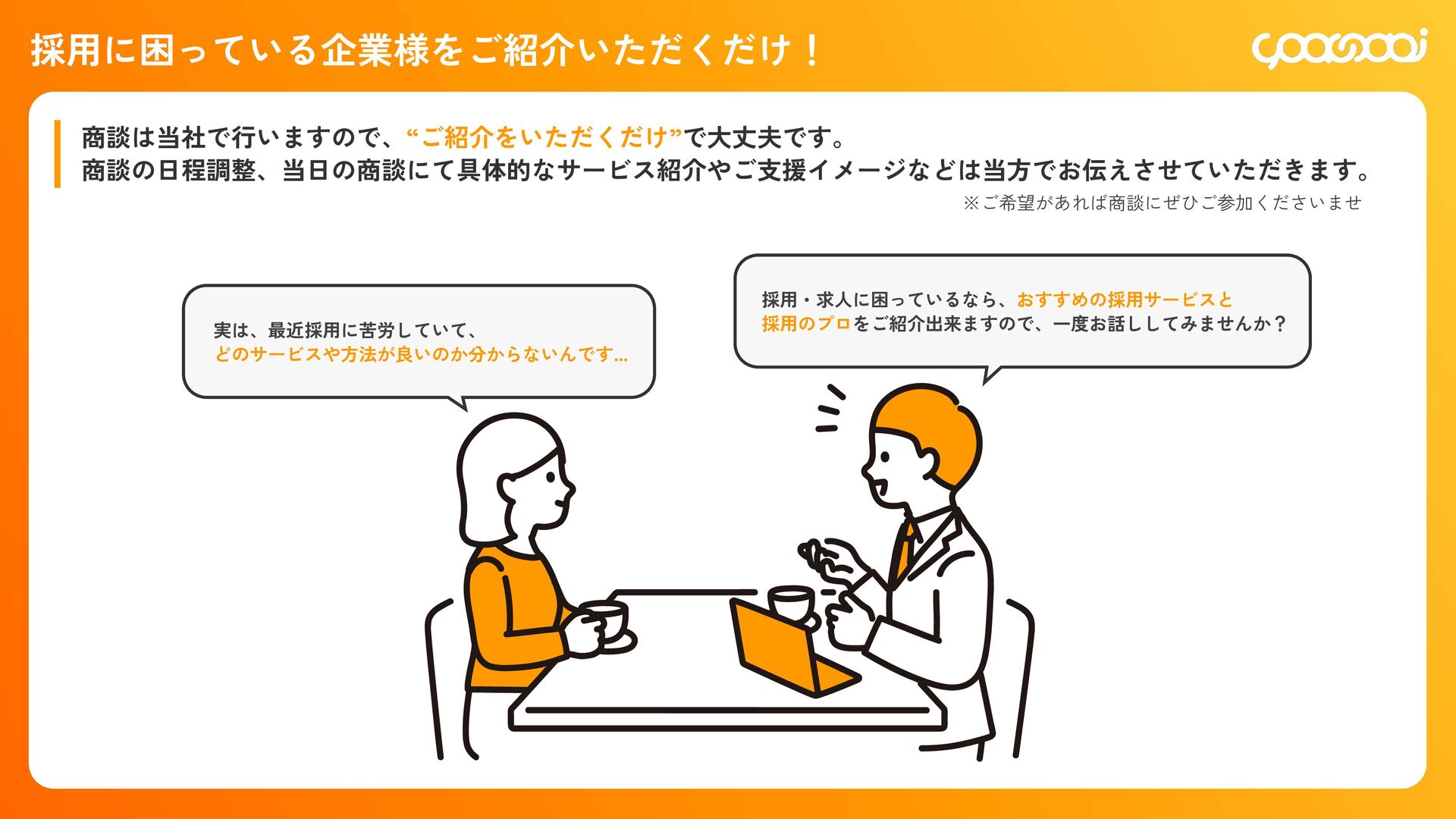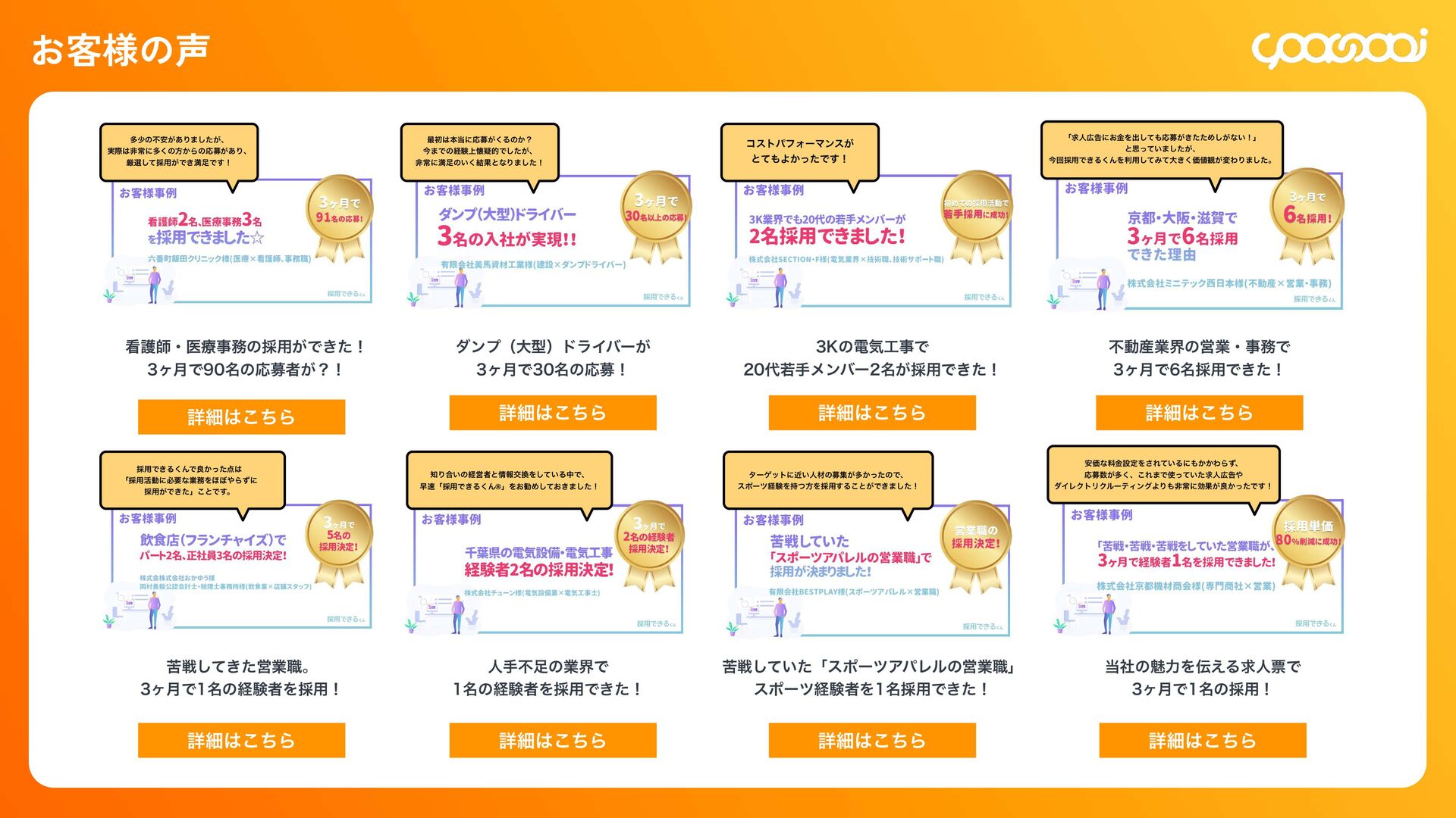 継続10ˋ:15,000円 300,000円 初回20ˋ:60,000円 継続10ˋ:30,000ԁ 450,000円 初回20ˋ:90,000円 継続10ˋ:45,000円 780,000円 初回20ˋ:156,000円 継続10ˋ:78,000円 KOHOくん ー ー 300,000円 初回20ˋ:60,000円 継続10ˋ:30,000円 480,000円 初回20ˋ:96,000円 継続10ˋ:48,000円 600,000円 初回20ˋ:120,000円 継続10ˋ:60,000円 シン・採用できるくん ◯ ー 800,000円 IT導入補助金適用:400,000円 初回25ˋ:100,000円 1,200,000円 IT導入補助金適用:600,000円 初回25ˋ:150,000円 1,600,000円 IT導入補助金適用:800,000円 初回25ˋ:200,000円 各プランの手数料一覧 手数料 20ˋ 手数料 20ˋ 手数料 25ˋ