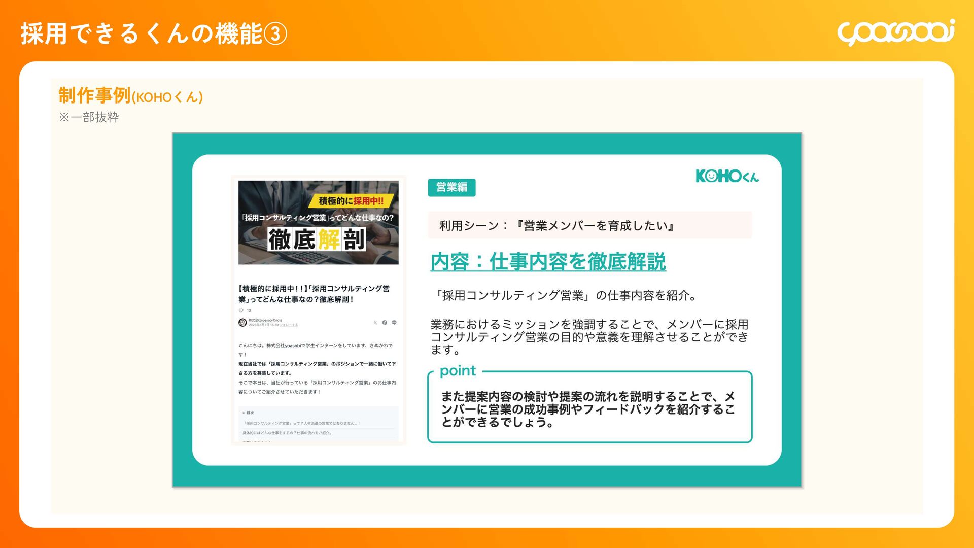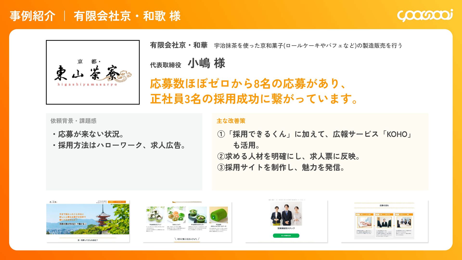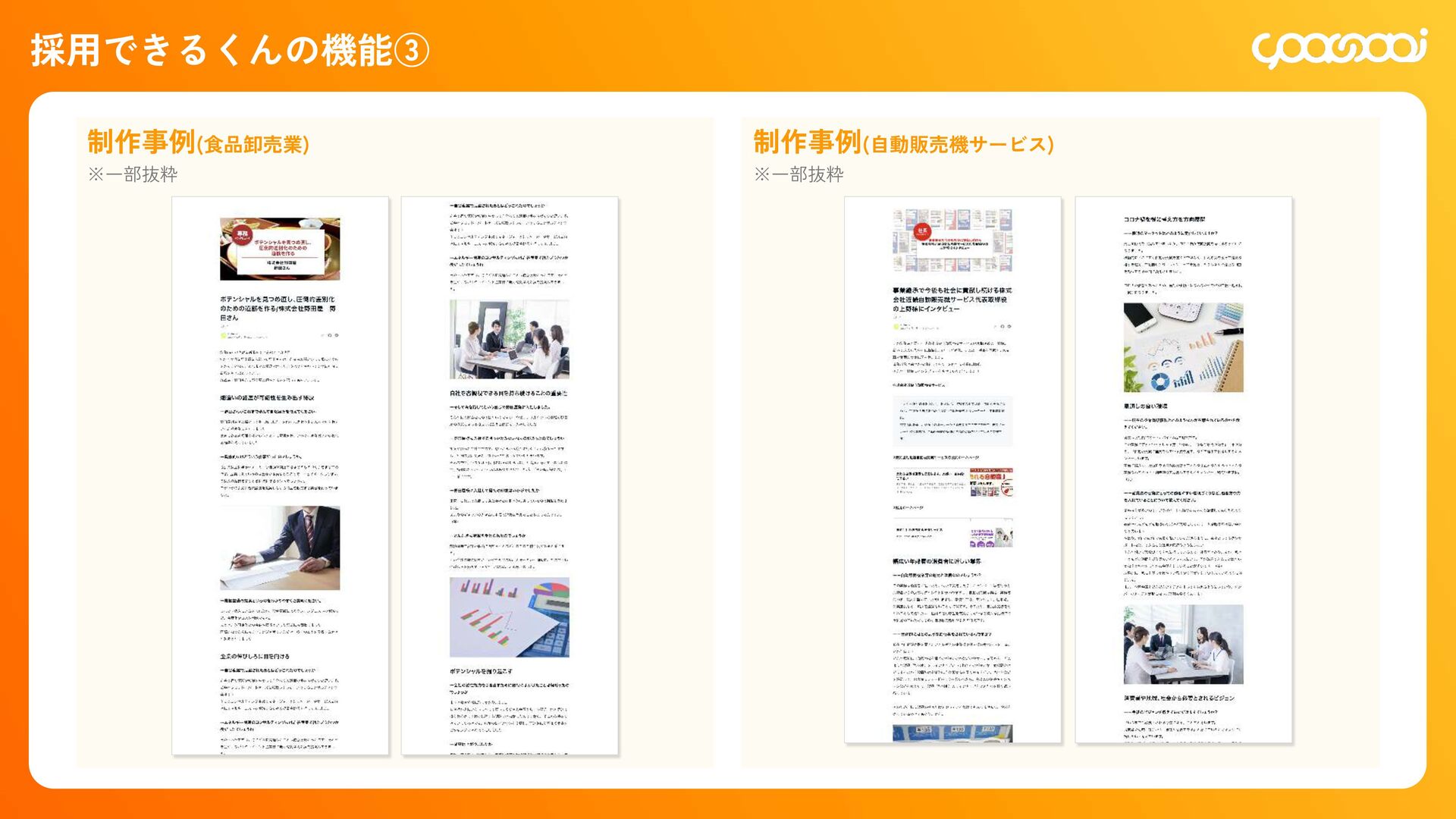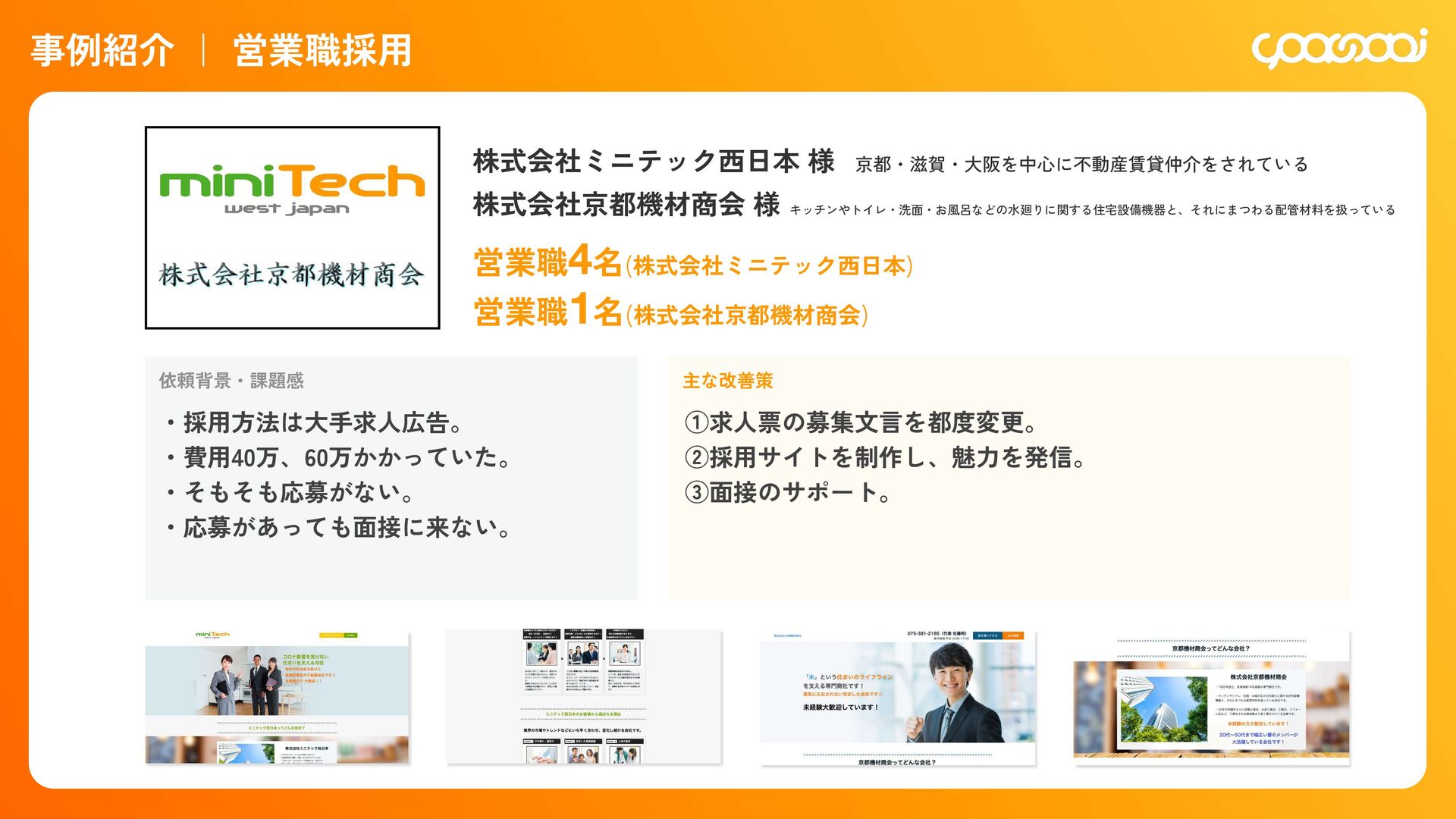継続10ˋ:15,000円 300,000円 初回20ˋ:60,000円 継続10ˋ:30,000ԁ 450,000円 初回20ˋ:90,000円 継続10ˋ:45,000円 780,000円 初回20ˋ:156,000円 継続10ˋ:78,000円 KOHOくん ー ー 300,000円 初回20ˋ:60,000円 継続10ˋ:30,000円 480,000円 初回20ˋ:96,000円 継続10ˋ:48,000円 600,000円 初回20ˋ:120,000円 継続10ˋ:60,000円 シン・採用できるくん ◯ ー 800,000円 IT導入補助金適用:400,000円 初回25ˋ:100,000円 1,200,000円 IT導入補助金適用:600,000円 初回25ˋ:150,000円 1,600,000円 IT導入補助金適用:800,000円 初回25ˋ:200,000円 各プランの手数料一覧 手数料 20ˋ 手数料 20ˋ 手数料 25ˋ