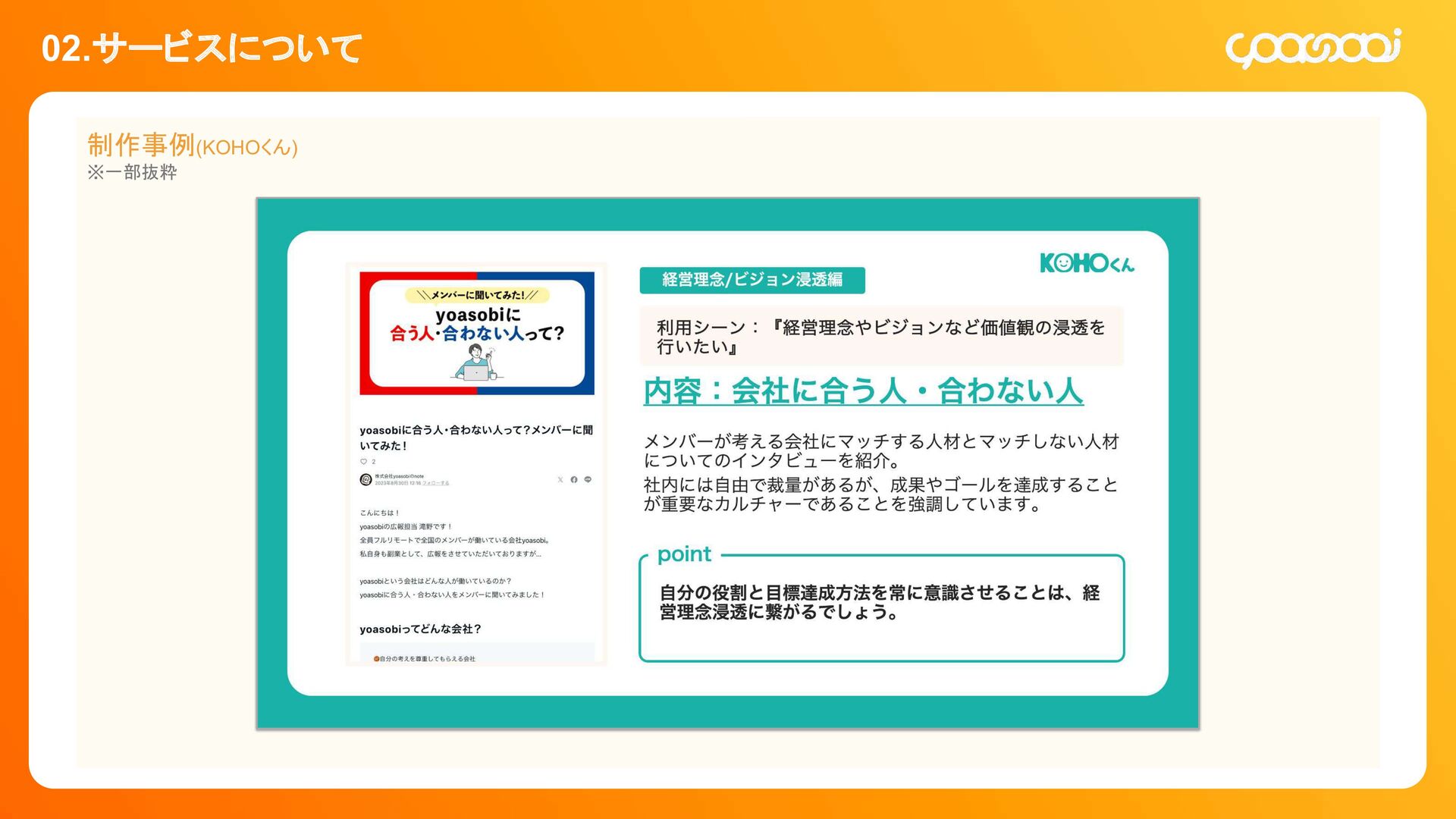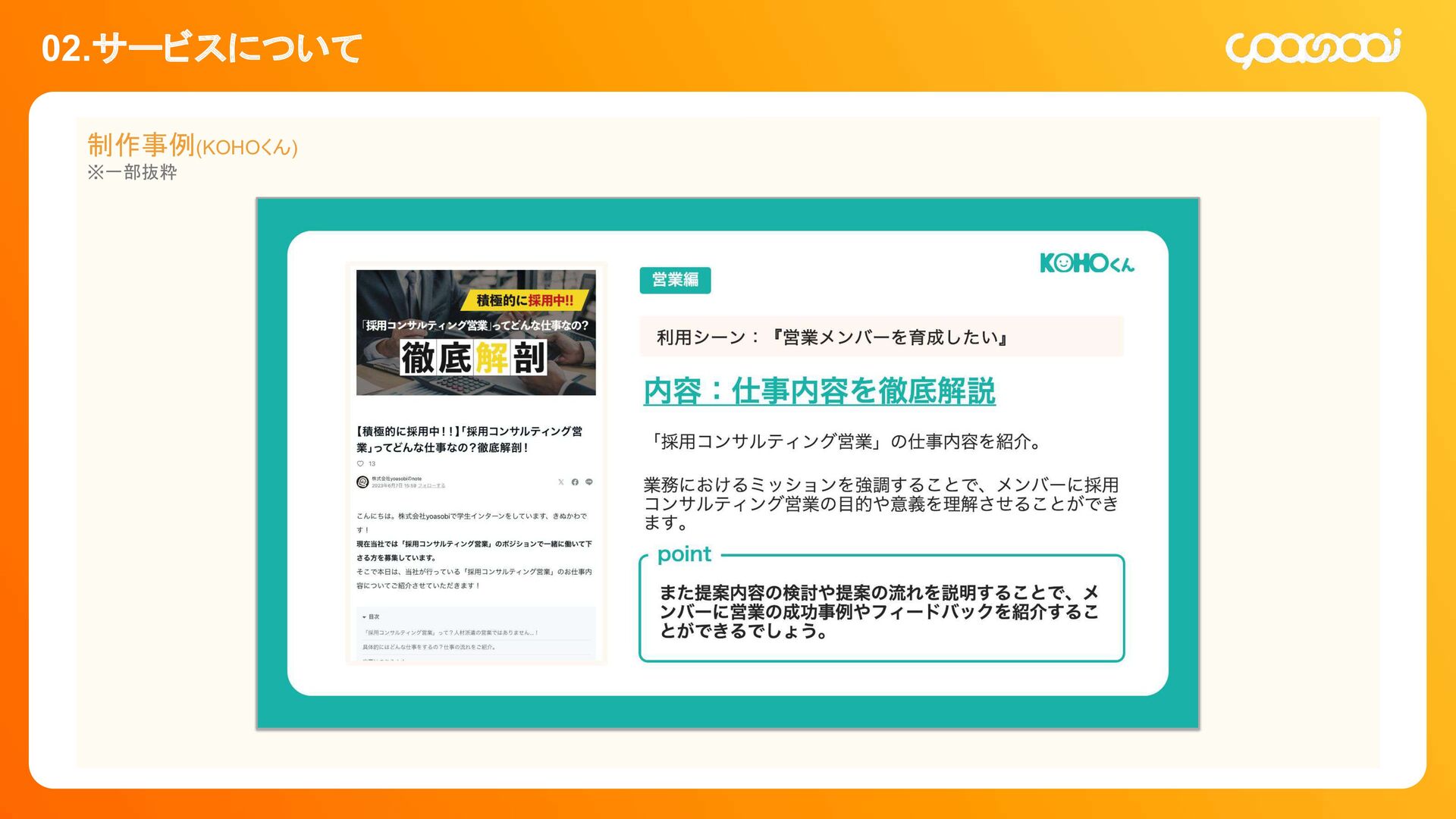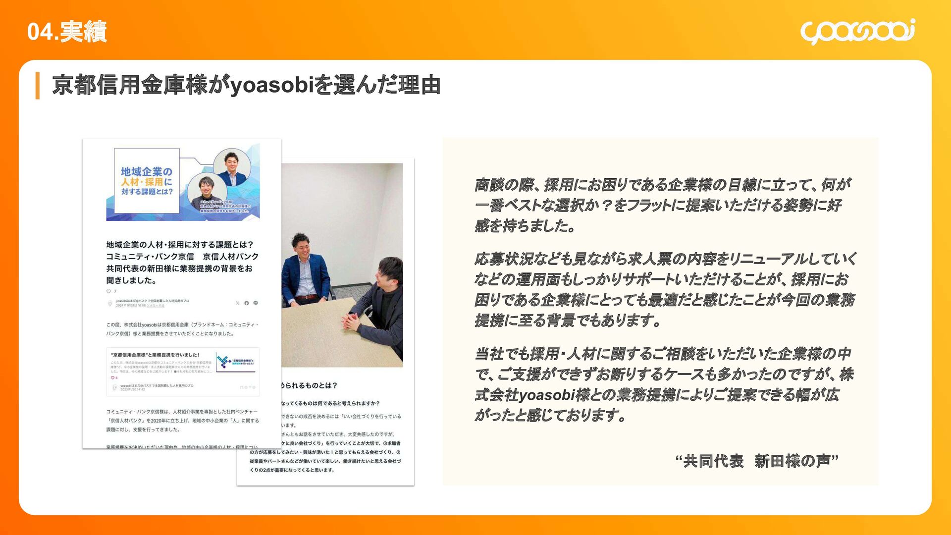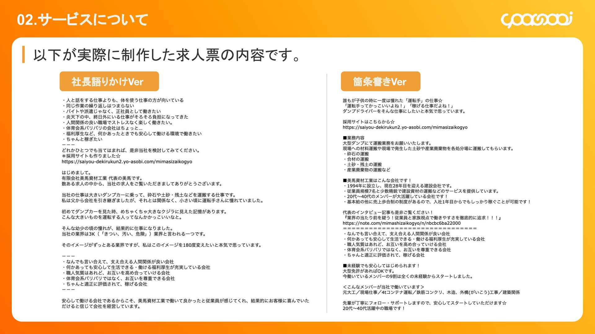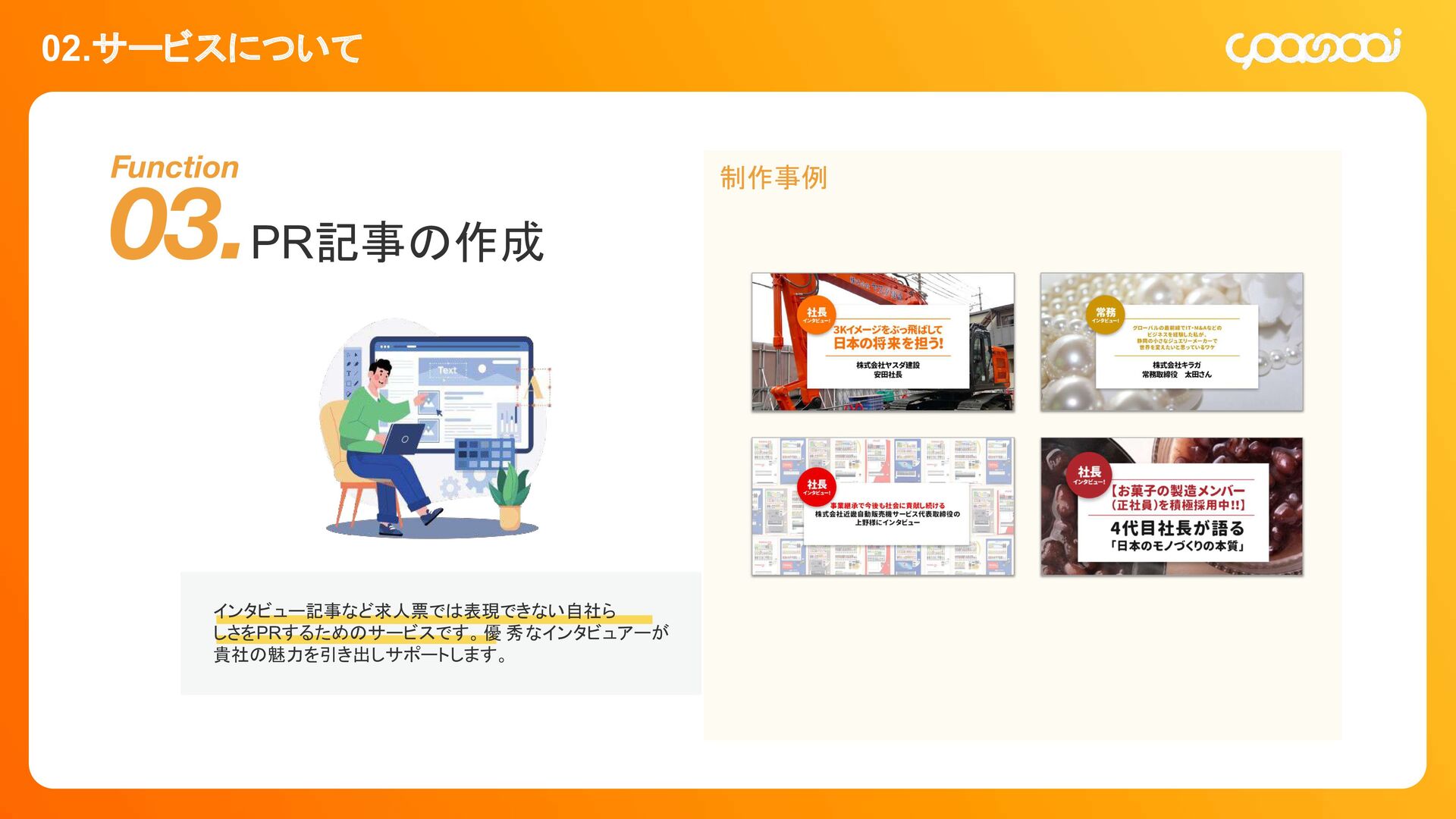 12ヶ月プラン ¥ 1,000,000円お得! 1 2 3 総額 ¥150,000円 (税別) 月額 ¥100,000円 (税別) 総額 ¥300,000円 (税別) 月額 ¥75,000円 (税別) 総額 ¥450,000円 (税別) 月額 ¥65,000円 (税別) 総額 ¥780,000円 (税別) 初期費用:一律 100,000円 (税別) ※利用途中で仮にご採用が決まった場合は、その都度止めていただくことも可能です。 再度再開する際は、残っております残数よりご利用いただけるよう柔軟性をもってご利用いただけます。 03.料金