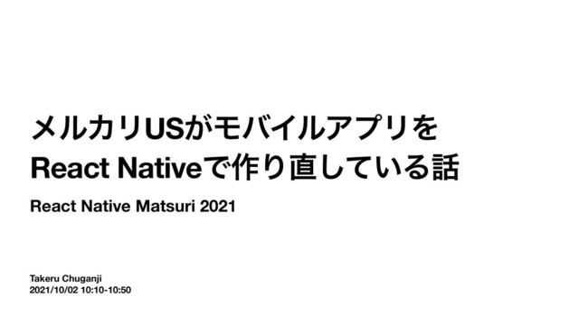 Takeru Chuganji 2021/10/02 10:10‐10:50 ϝϧΧϦUS͕ϞόΠϧΞϓϦΛ React NativeͰ࡞Γ͍ͯ͠Δ React Native Matsuri