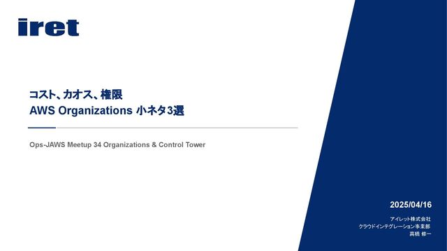Ops-JAWS Meetup 34 Organizations & Control Tower 2025/04/16 コスト、カオス、権限 AWS