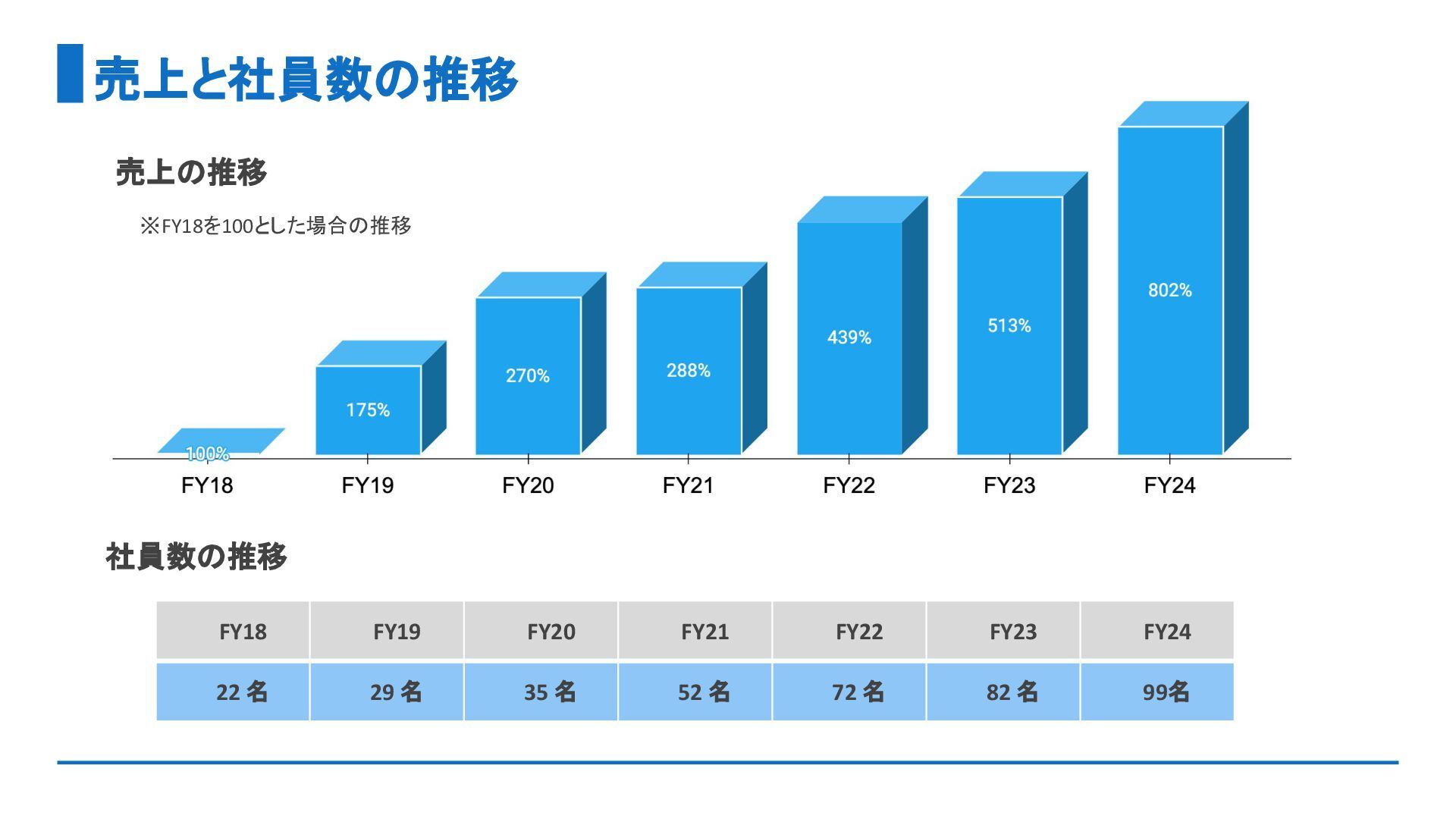 名 29 名 35 名 52 名 72 名 82 名 99名 ※FY18を100とした場合の推移 売上の推移