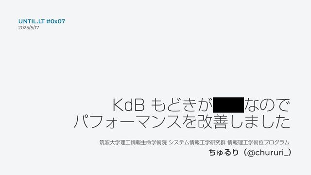 ,E# Ͳ͖͕ΧεͳͷͰ ύϑΥʔϚϯεΛվળ͠·ͨ͠ ஜେֶཧใੜֶ໋ज़Ӄ γεςϜใֶݚڀ܈ ใཧֶज़ҐϓϩάϥϜ ͪΎΔΓʢ@chururi_ʣ UNTIL.LT #0x07 2025/5/17