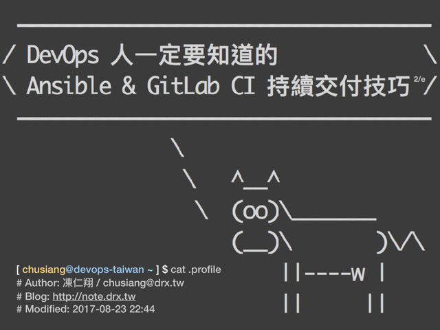 本次凍仁將會藉由 Ansible 和 GitLab 帶領大家一探持續部署的世界和 DevOps 的威力!