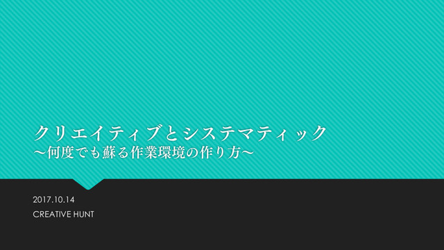 「クリエイティブとシステマティック~何度でも蘇る作業環境の作り方~」
