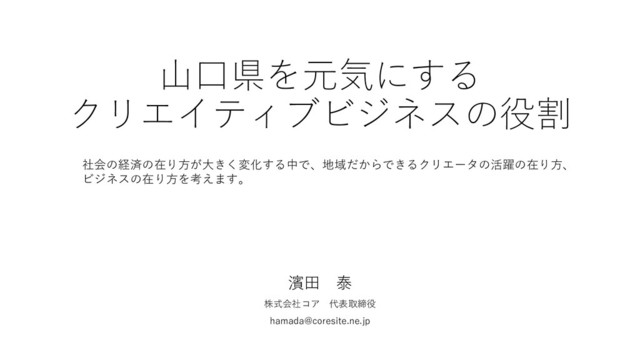 ネット社会が展開する中で、地域におけるビジネスチャンスは大きく変わってきている。それは一時のブームではなく、これからますます進展していくものだといえる。 「獺祭」の世界に展開するプロモーションや広告展開に関わって来た経験をもとに、地方の強みを生かして、ネットビジネスに関わるクリエイターのあるべきの在り方を伝えます。