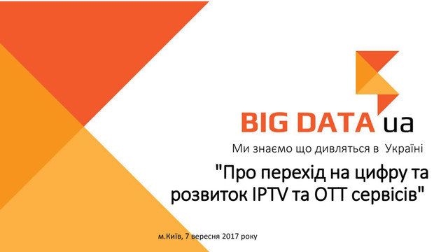 2017р 14,4% 16,7% 17,3% 31,9% 26,7% 29,1% 40,3% 34,3% 26,5% 25,4% 23,0% 16,2% 18,3% 16,2% 14,9% 12,6% 14,1% 12,6% 4,5% 5,0% DTH супутникове ТБ Цифрове-єфірне ТБ мовлення Кабельне ТБ IPTV на власних мережах Як Ви вважаєте, коли "традиційне ТБ мовлення", що постачається наведеними типами інфраструктури, буде повністю замінене ІР/ОТТ засобами доставки контенту? 1-5 років 5-10 років 10-15 років більше 15 років ніколи 46% 57,6% 41% 66%